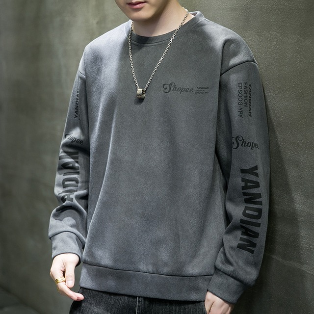 新型ラウンドネックスウェットベルベットシャツ男性春ファッションスエードプリント丸首がゆったり122