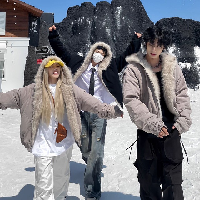 フード付きカジュアルコート400Gレトロ男性秋冬モデルアメリカ文字刺繍ゆるい80