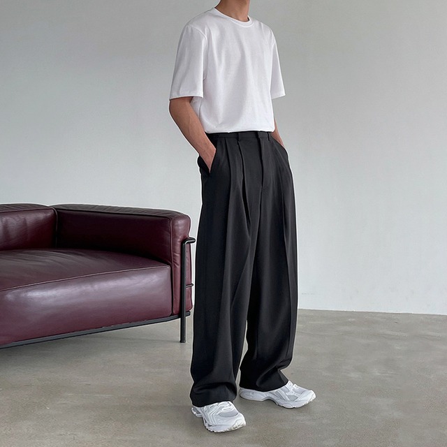 ブラックパンツクリーンフィット メンズ秋ワイドレッグ ルーズ カジュアル プロフェッショナル スーツ パンツ カジュアル ファッション524