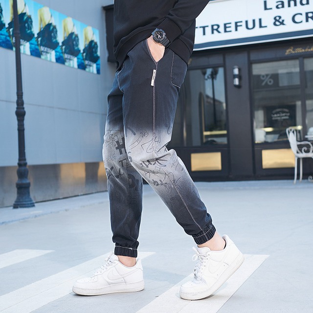 コットンストレートジーンズ大きいサイズ春夏おしゃれ水洗いグラデーションカジュアル薄いズボン504