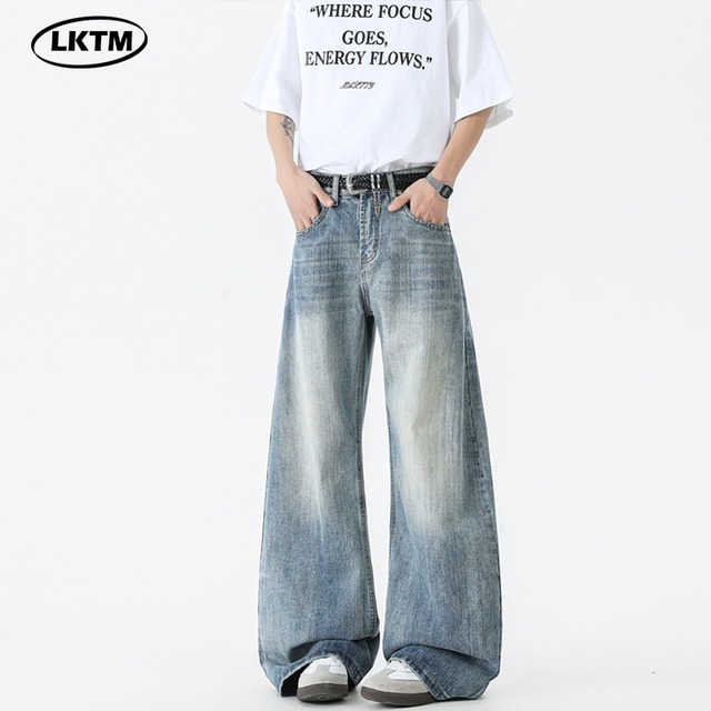 ストレートジーンズカジュアルメンズ夏アメリカ男女広い足長いズボン372