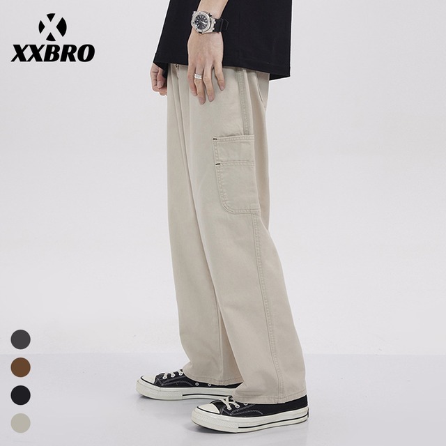新商品スーツパンツメンズ夏シンプルレトロアメリカ大きなポケットカジュアルゆるい395