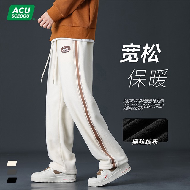 スポーツストレートパンツフリースズボン男性秋冬新商品ベルベットアメリカストライプ682