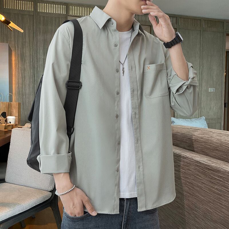 シャツ男性 新型のゆったりした長袖の上着 韓国版ファッションのカジュアルな熱いハンサムなシャツ17