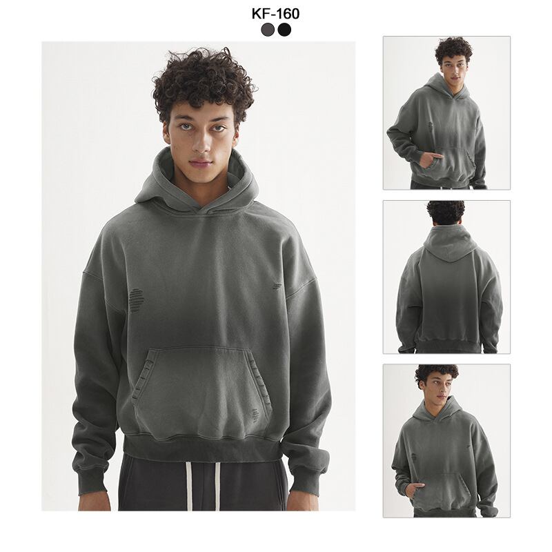 メンズ レトロでゆったりしたショートガード2024年秋スウェットシャツフリースセーターフード付き20