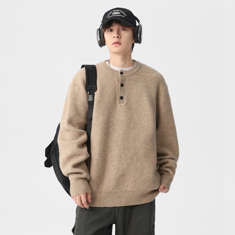 メンズ # アメリカンレトロシンプル純色ニットセーター男性高級感ユニセックス41
