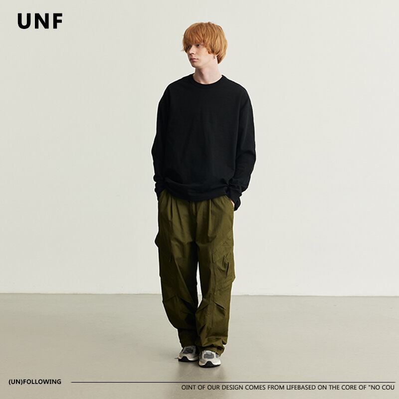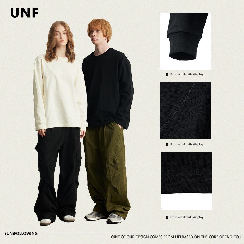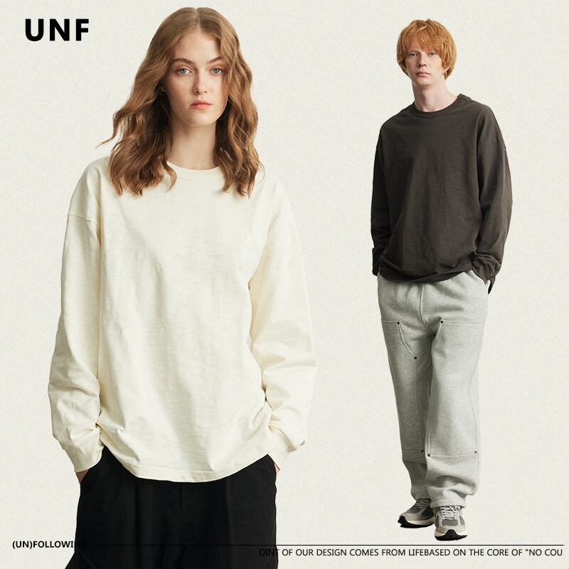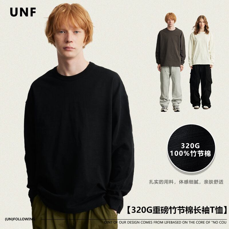 新作長袖Tシャツ320G バンブーコットンソリッドカラールーズベーシックトレンディハイストリート秋冬男性60