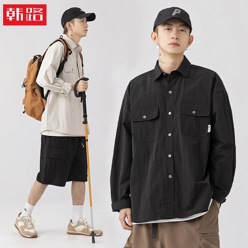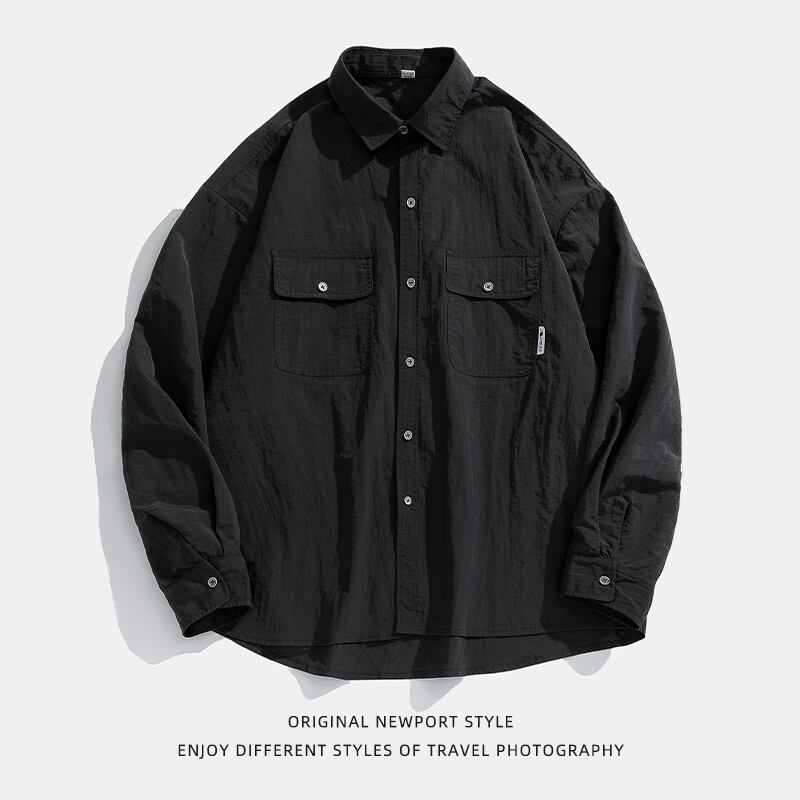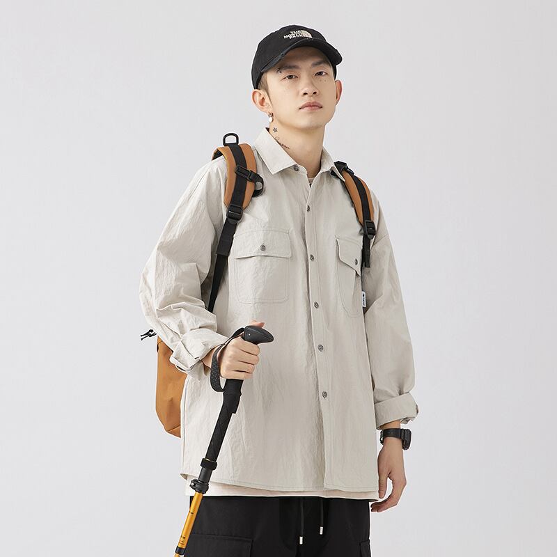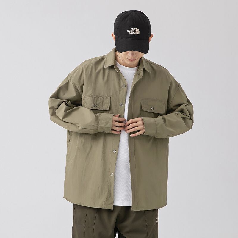 新型長袖カーディガンシャツ秋ゆったりナイロン74