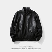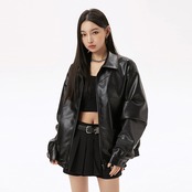 新作革コート男女兼用春レトロファッションジャケット秋アメリカ黒い合成皮革83
