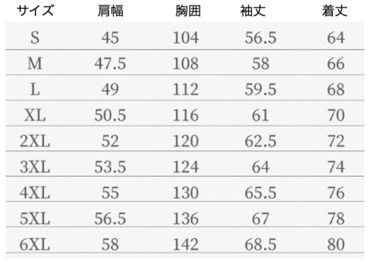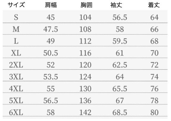・幅広いサイズ展開(Sから6XL)により、自分にぴったりのサイズを簡単に見つけることができます。