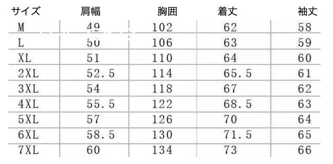 ・多様なサイズ展開(Mから7XL)により、自分に合ったサイズを見つけやすくなっています。