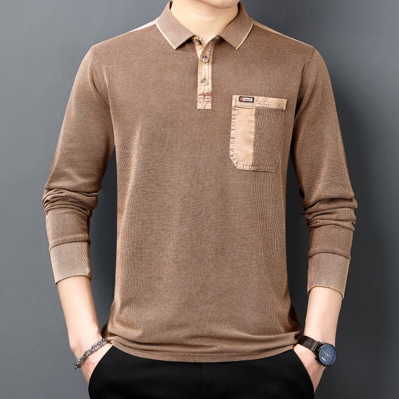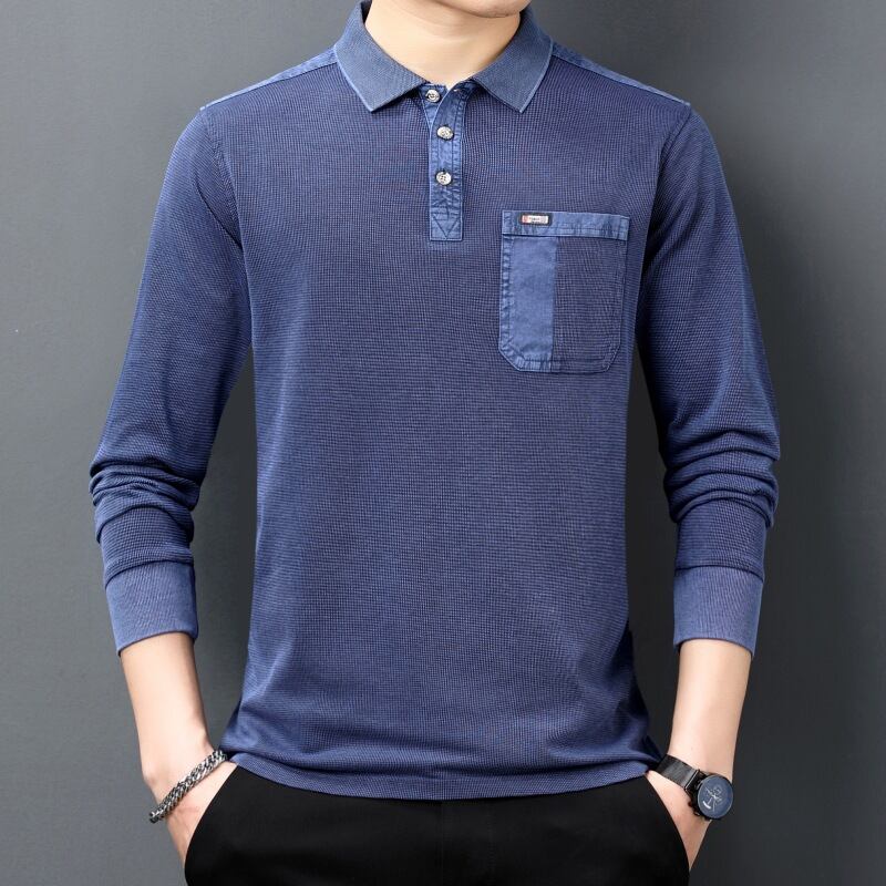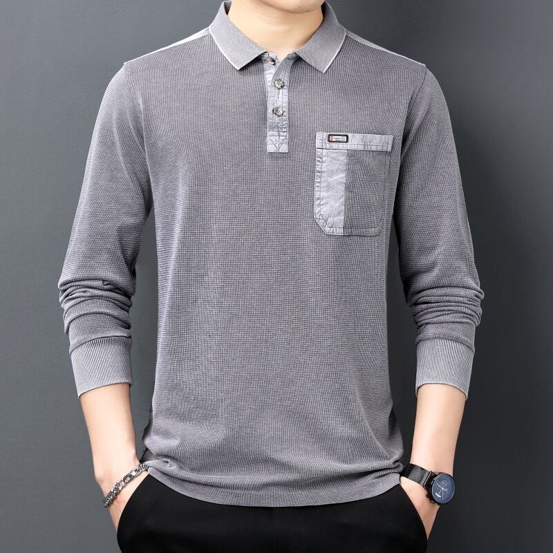新型長袖Tシャツシャツ男性ファッション襟ポケット綿男性秋145