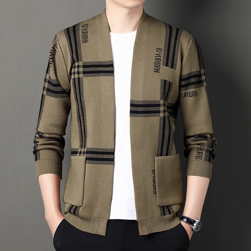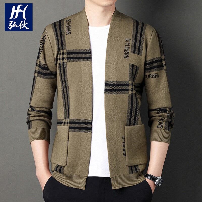 新作ニットカーディガン秋紳士服青年カジュアル幅ストライプ232