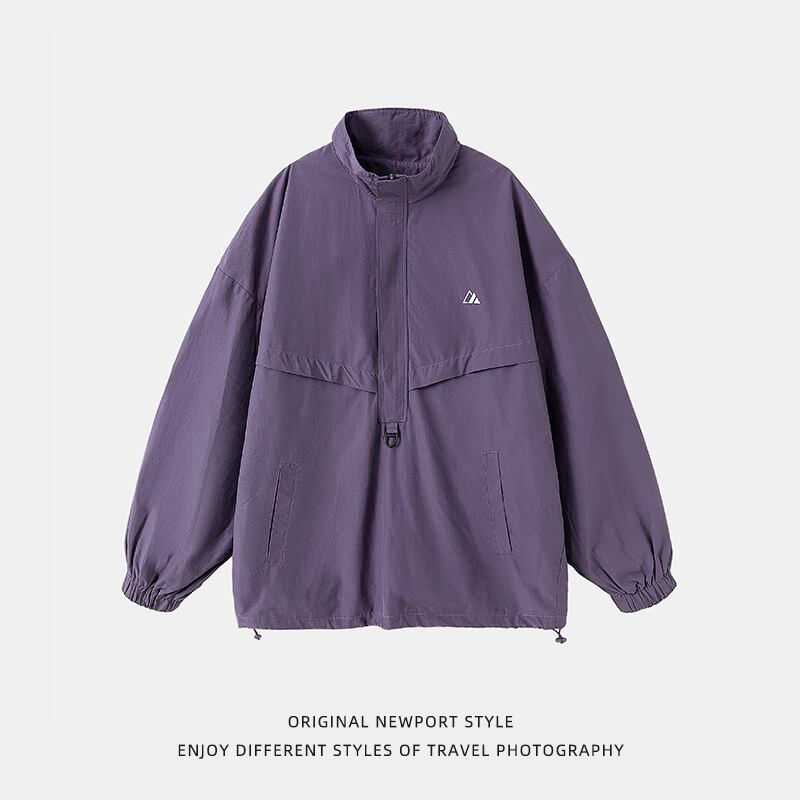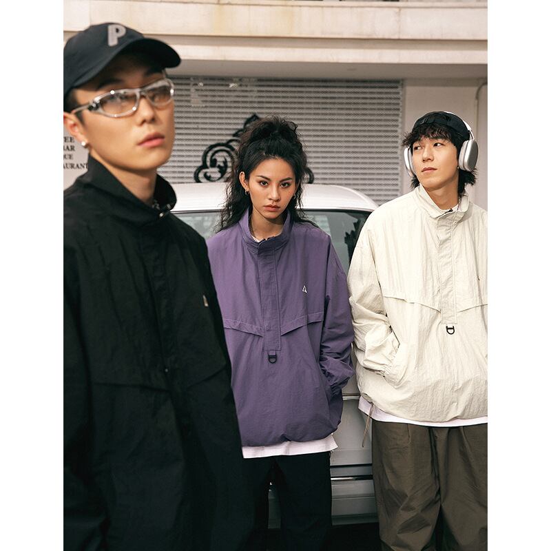 フード付きナイロンジャケット 男女共通 春 機能的質感 ゆったり カップル ハーフジップ トレンド233