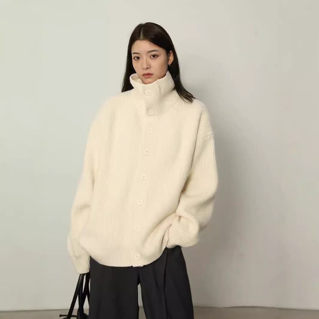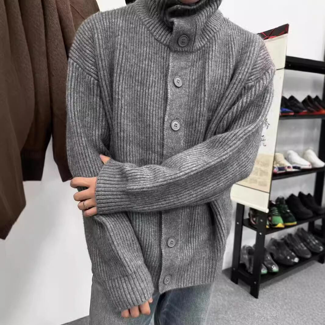 長袖高襟セーター冬600gコート男性ボタンカーディガンカジュアルゆったり男女245