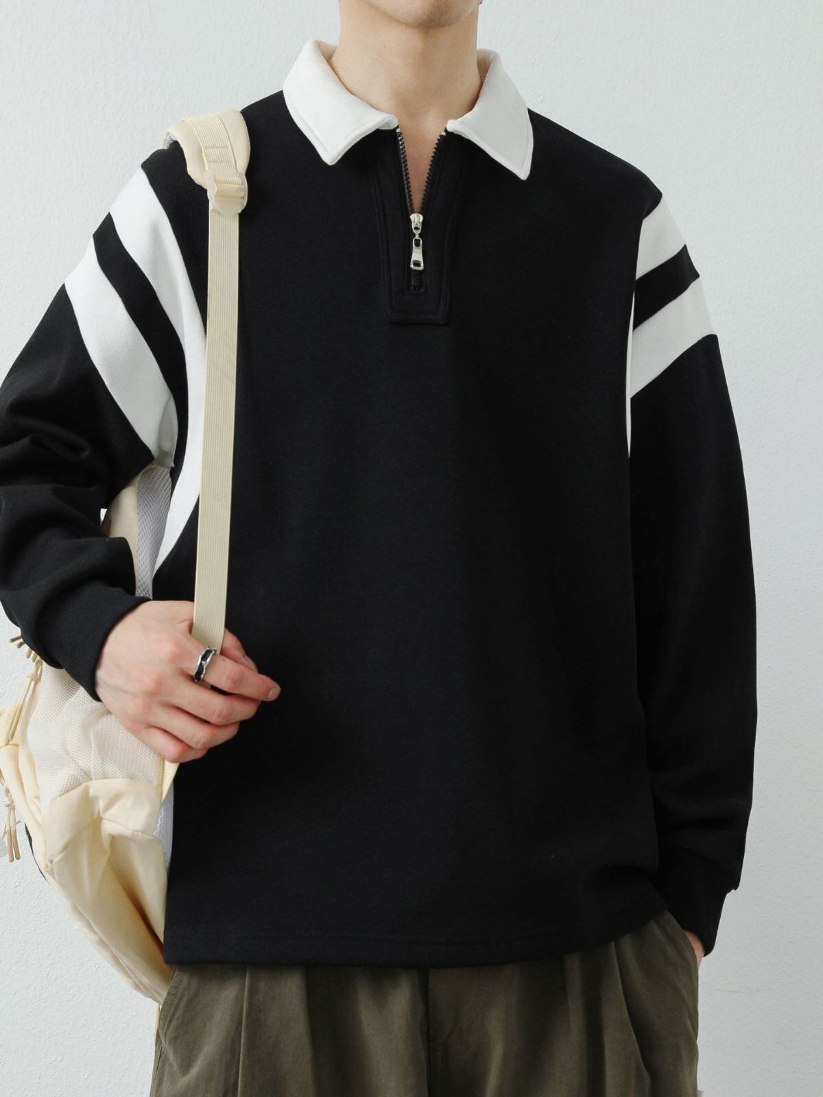 2023秋冬新作「メンズ長袖スウェットシャツ秋スタイル香港トレンドプルオーバーラペルトップカジュアルブラックボトムシャツ262」は、シーズンにぴったりなスタイリッシュでリラックスしたアイテムです。シンプルなデザインは、日常のコーディネートからお出かけまで幅広くご活用いただけます。サイズ展開はMから5XLまでご用意しており、さまざまな体型のお客様にフィットするよう配慮されています。
