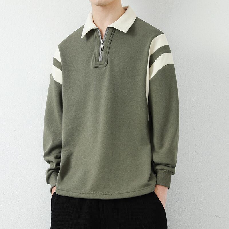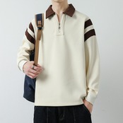 長袖スウェットシャツ秋スタイル香港トレンドプルオーバーラペルトップカジュアルシャツメンズ262