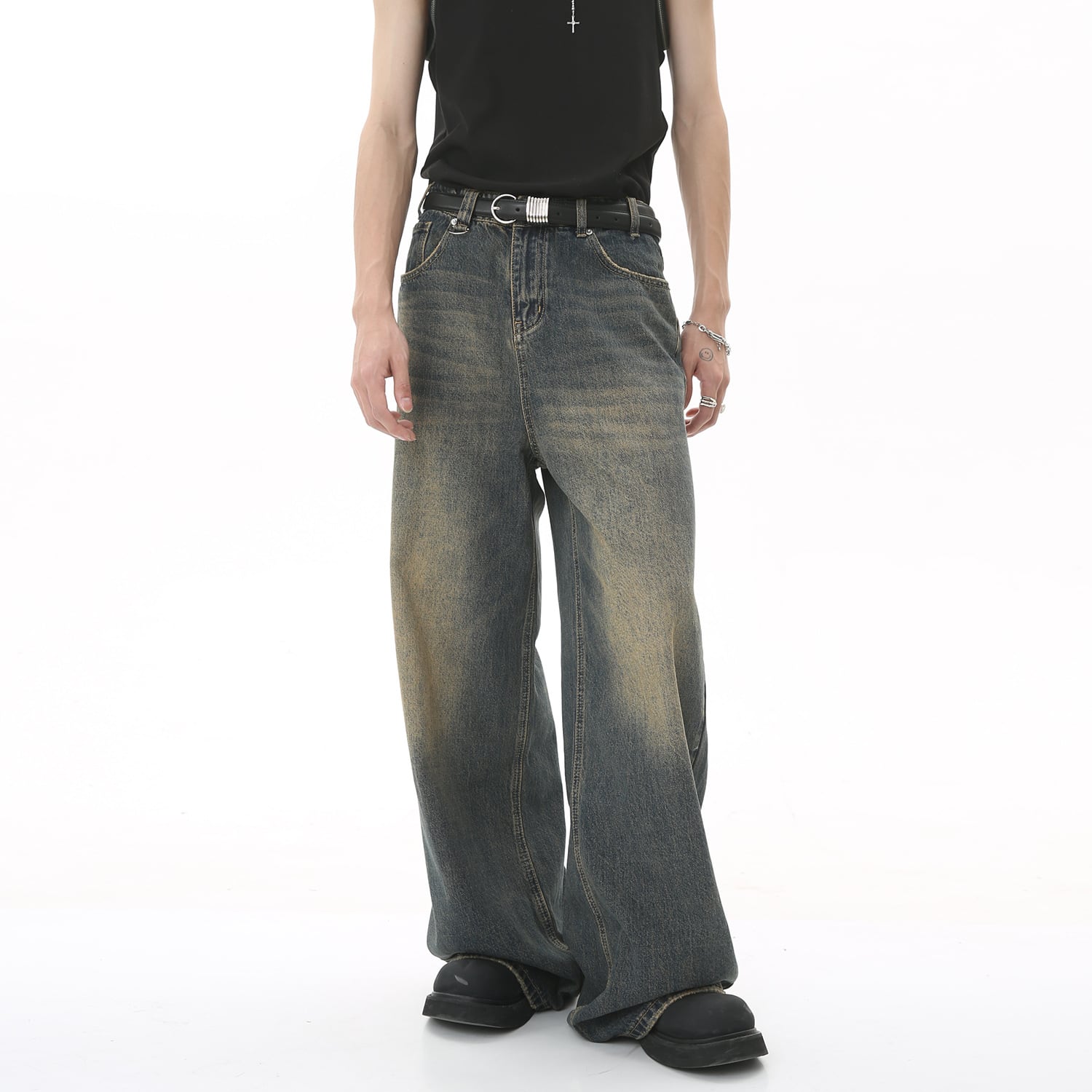 新作古いゆったりジーンズメンズ四季レトロ香港風 301