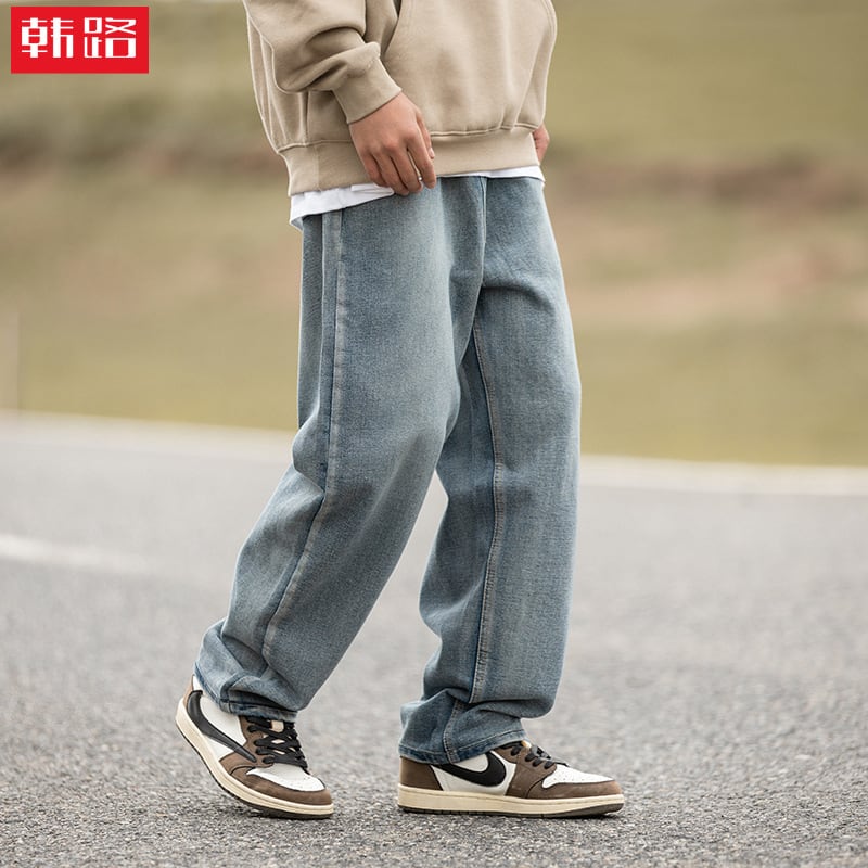 新作ストレートジーンズメンズ男性春純色水洗トレンドズボン331