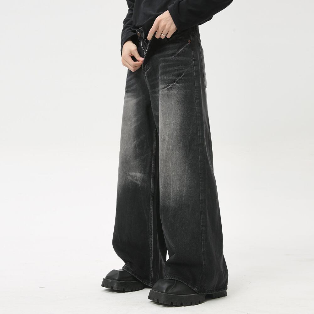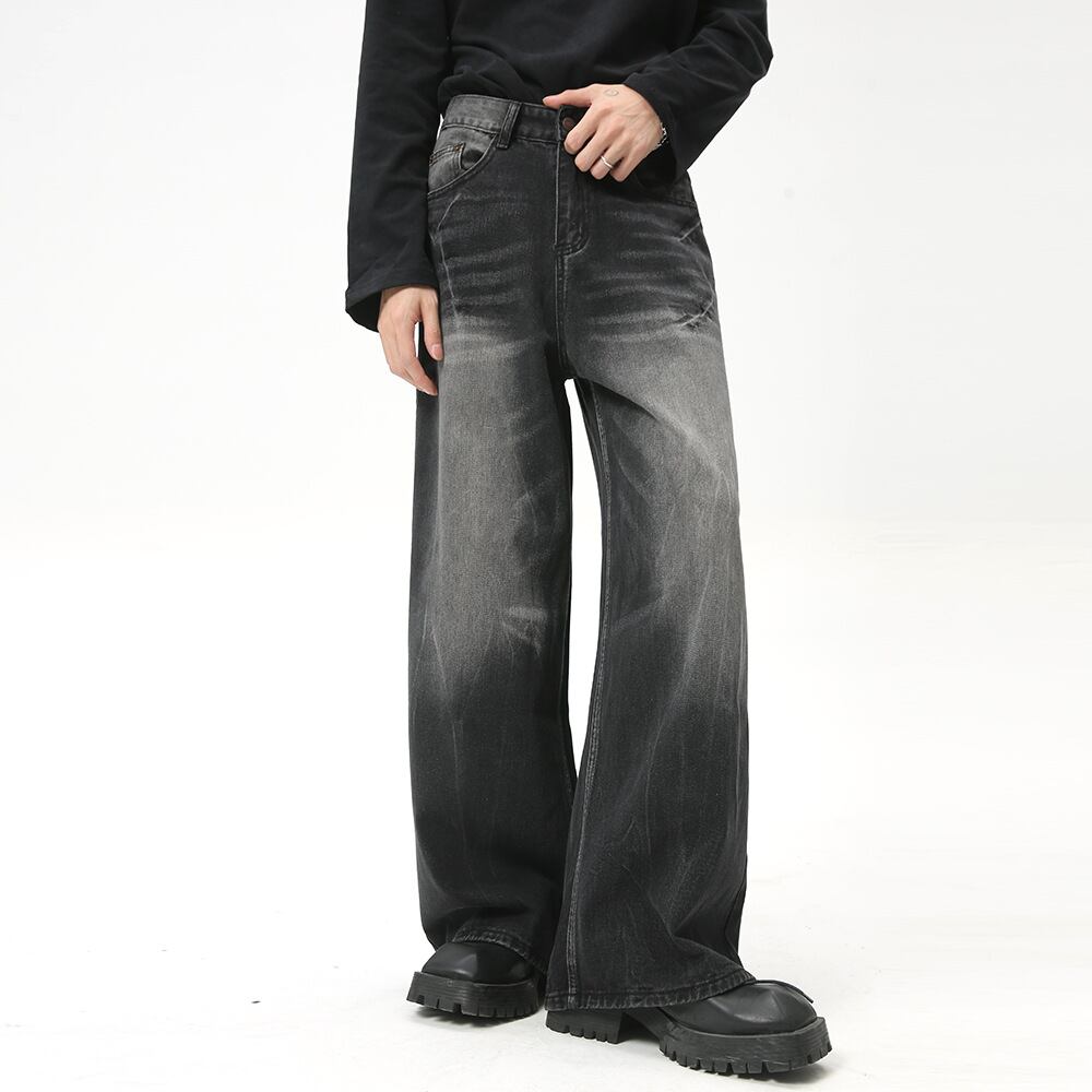 新作コットンジーンズメンズ夏アメリカレトロ水洗い黒灰335