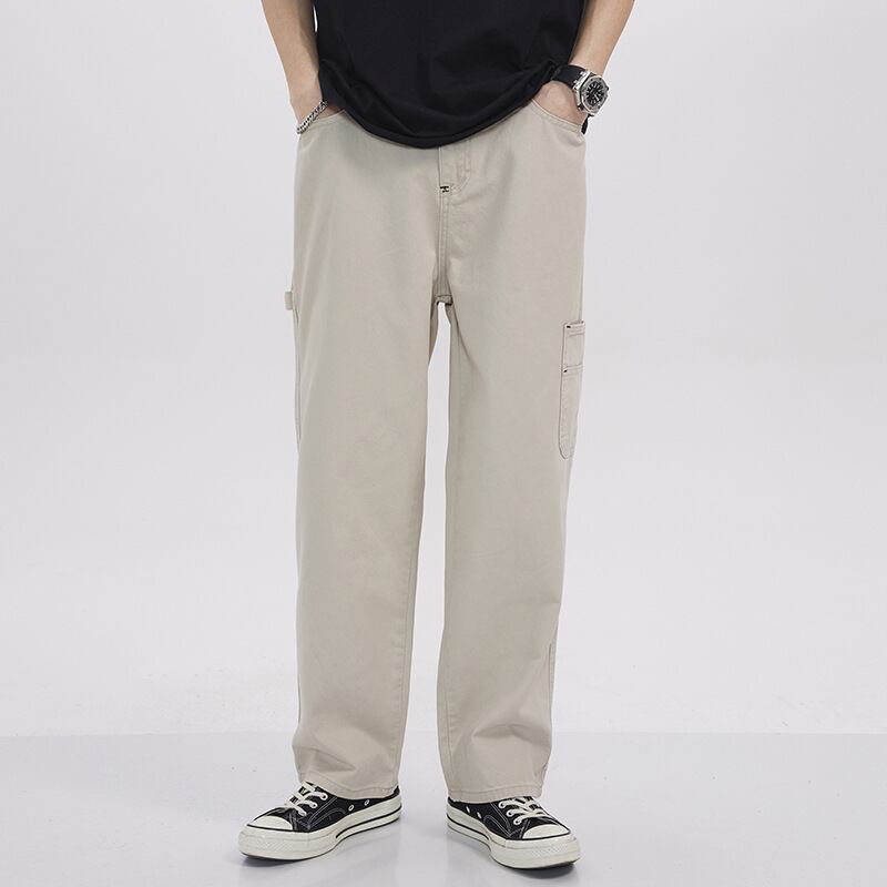 新作ストレートジーンズメンズ 夏のレトロ男性ゆるいポケット長ズボン342