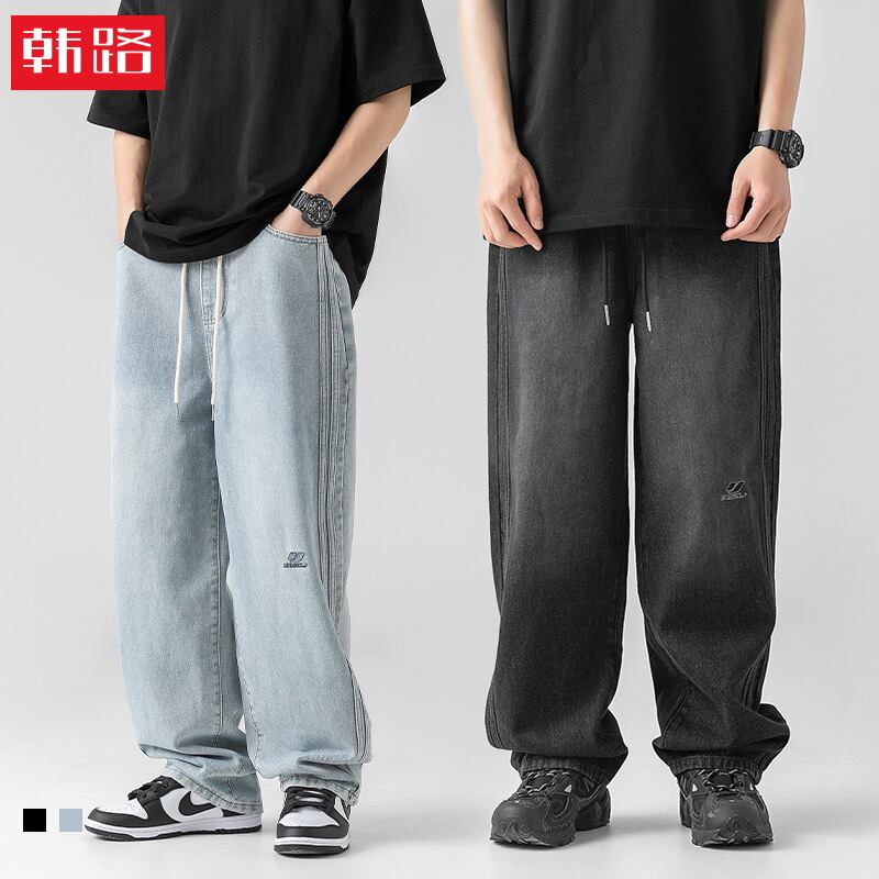 新作ストレートコットンジーンズ秋日系紳士服レトロ洗水344