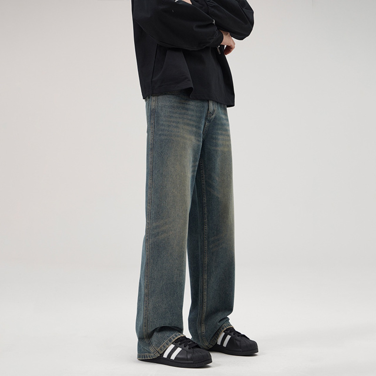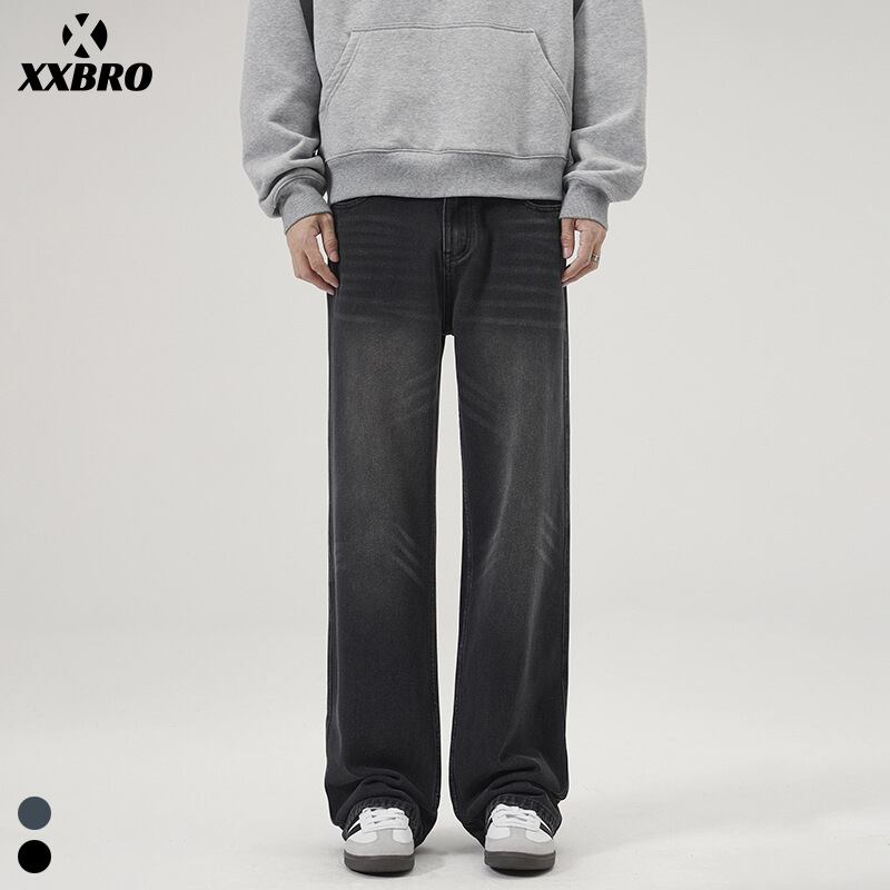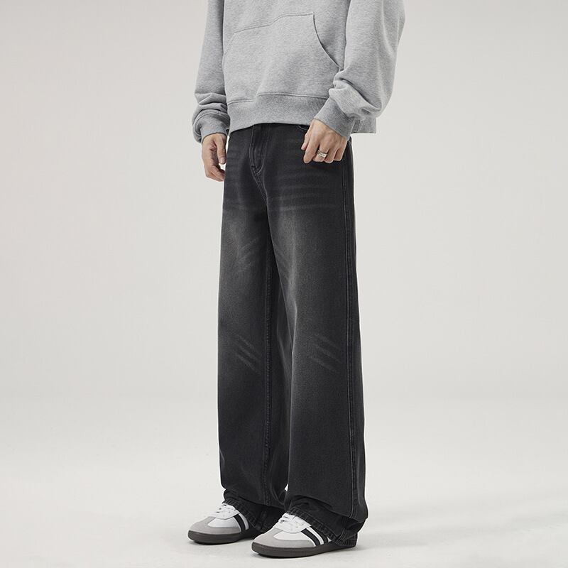 メンズ アメリカンレトジーンズ男子水洗いゆるいストレートパンツ348