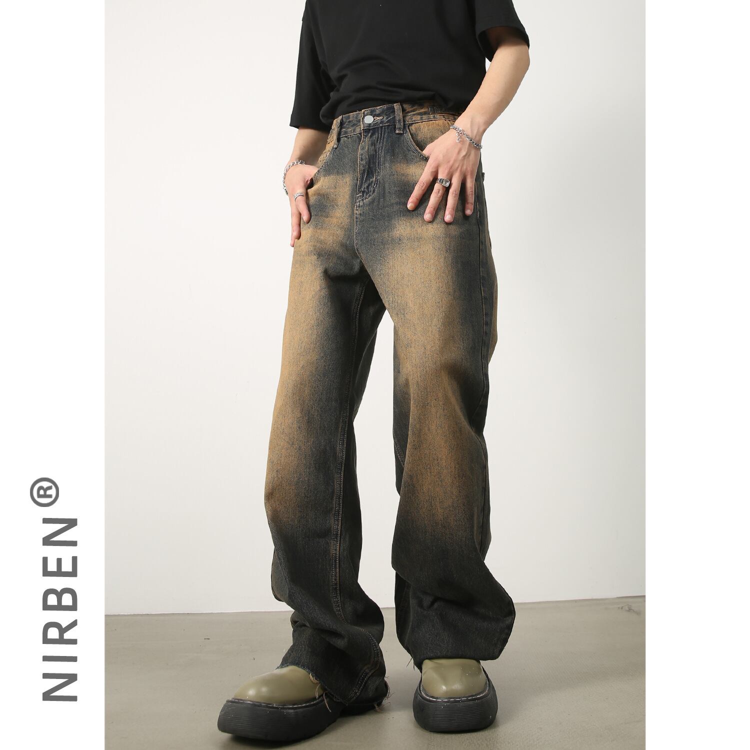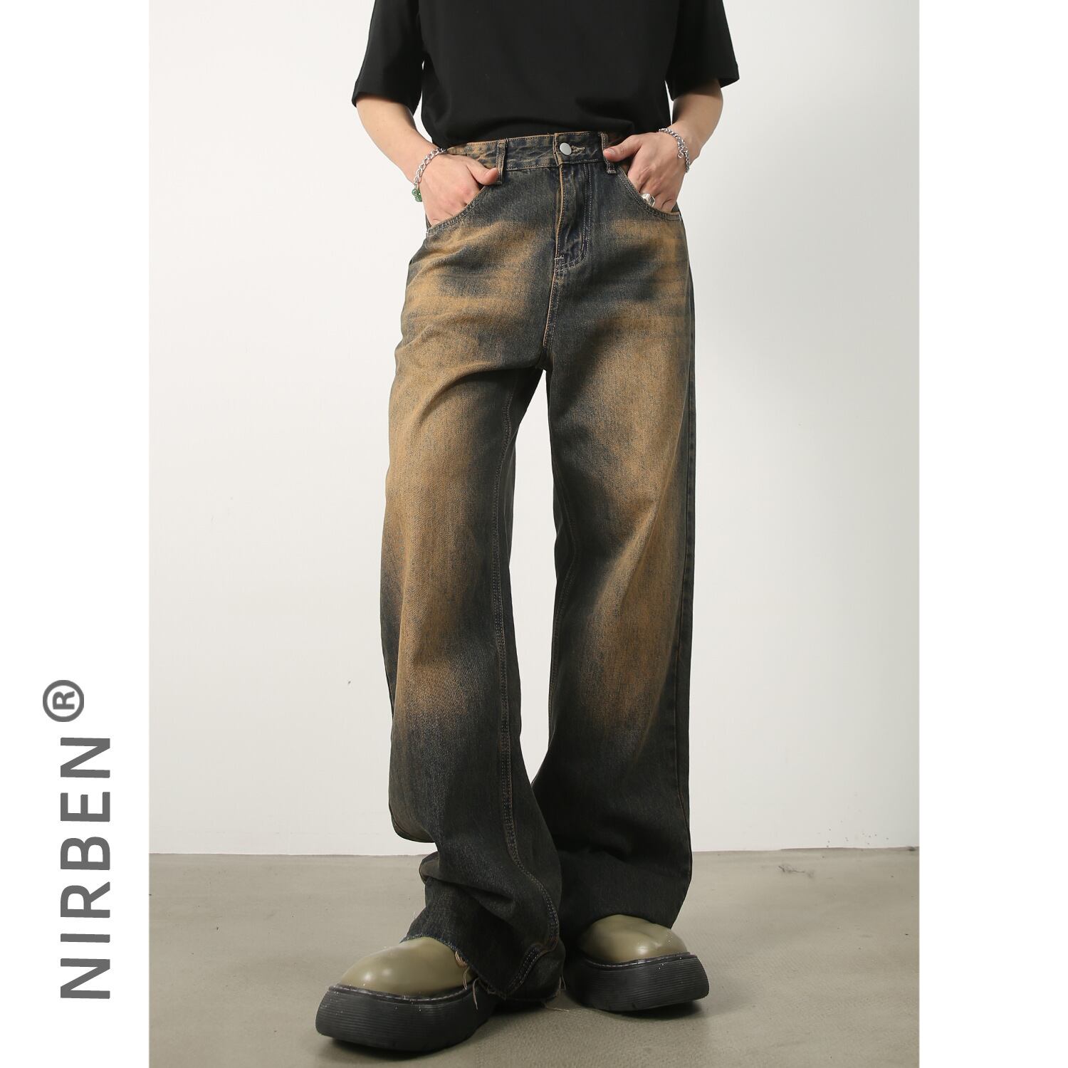 新作ウエストジーンズデニムレトロ男性韓国版ゆったりストレート353