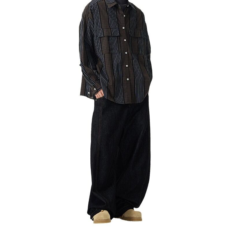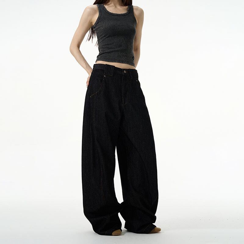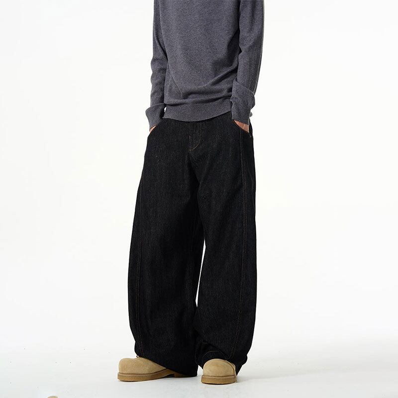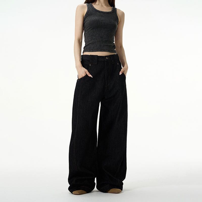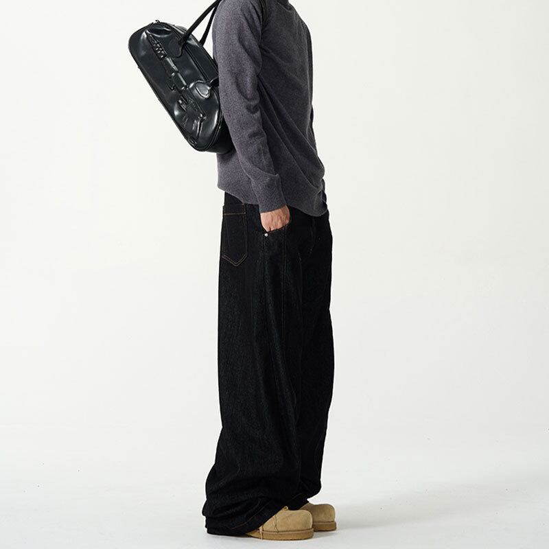ストレートジーパンアメリカレトロ広脚ゆったりズボン男女高級感黒色355