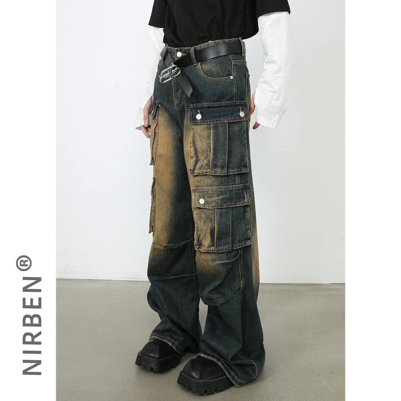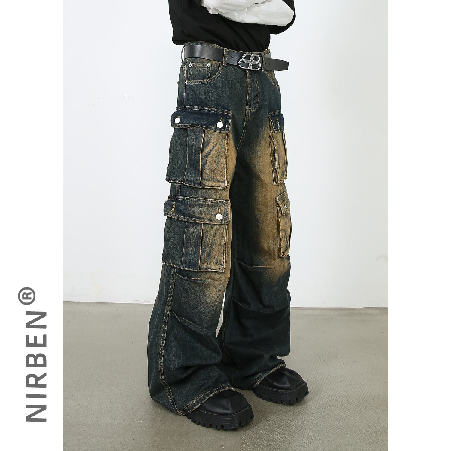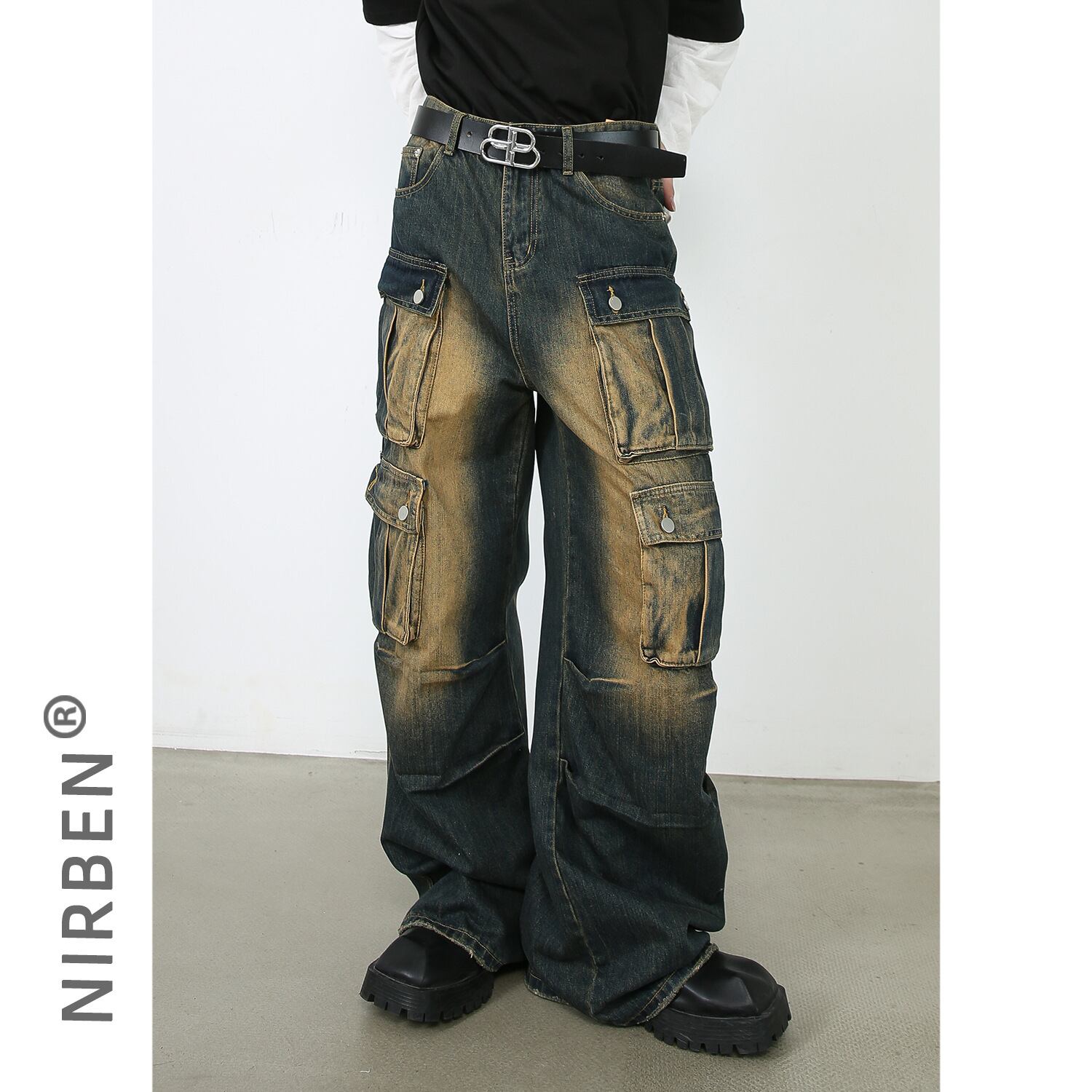 ストレートジーンズカウボーイアメリカレトロ男性ゆるいポケット広脚ズボン364