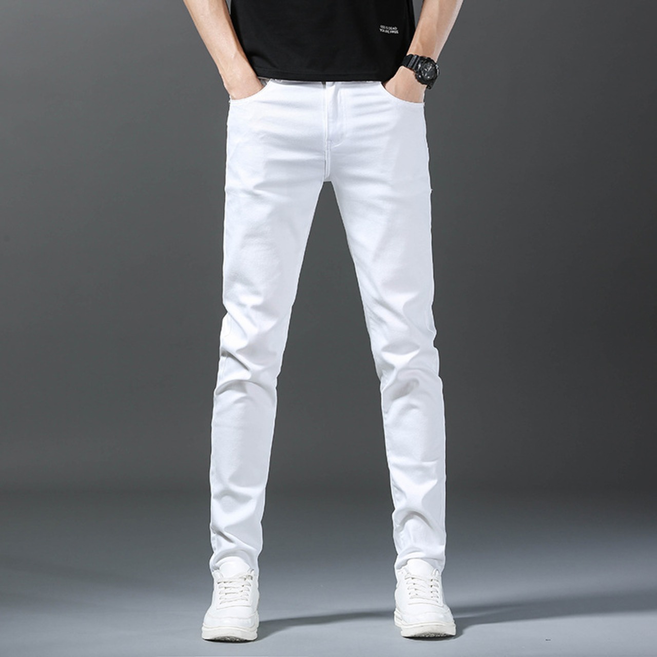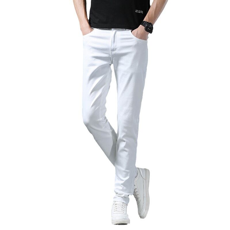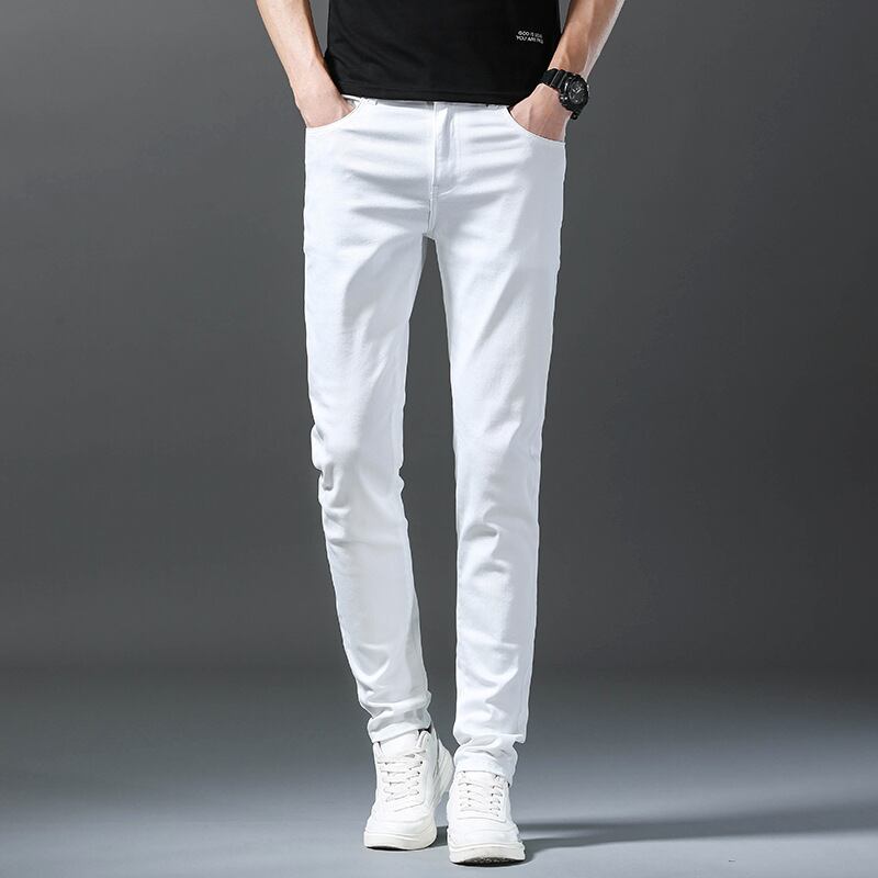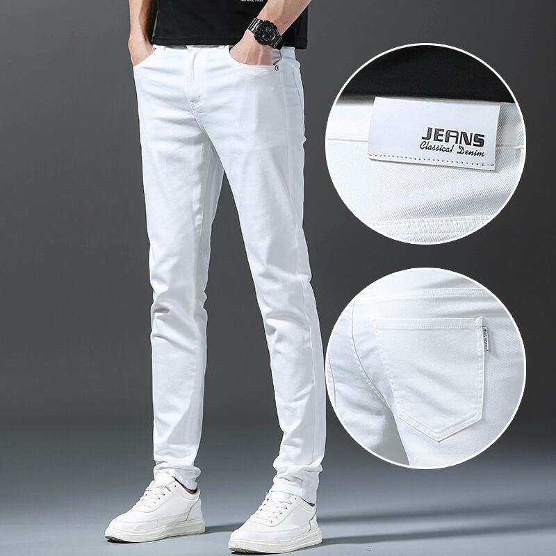 新作スリムジーンズメンズピュアホワイトウォッシュフィットスモールフットジーンズメンズ多目的アウター秋367