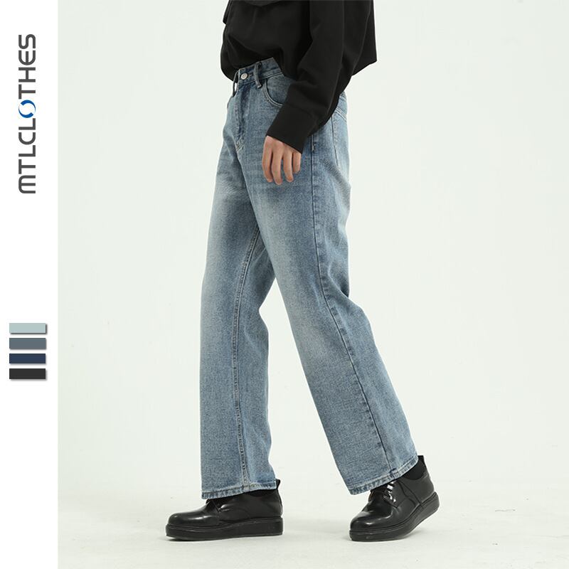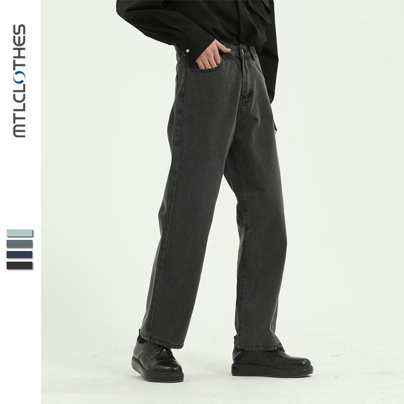 ストレートジーンズメンズ4色韓国版パンツレトロ男性ゆるいズボントレンド373