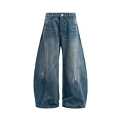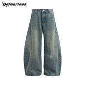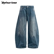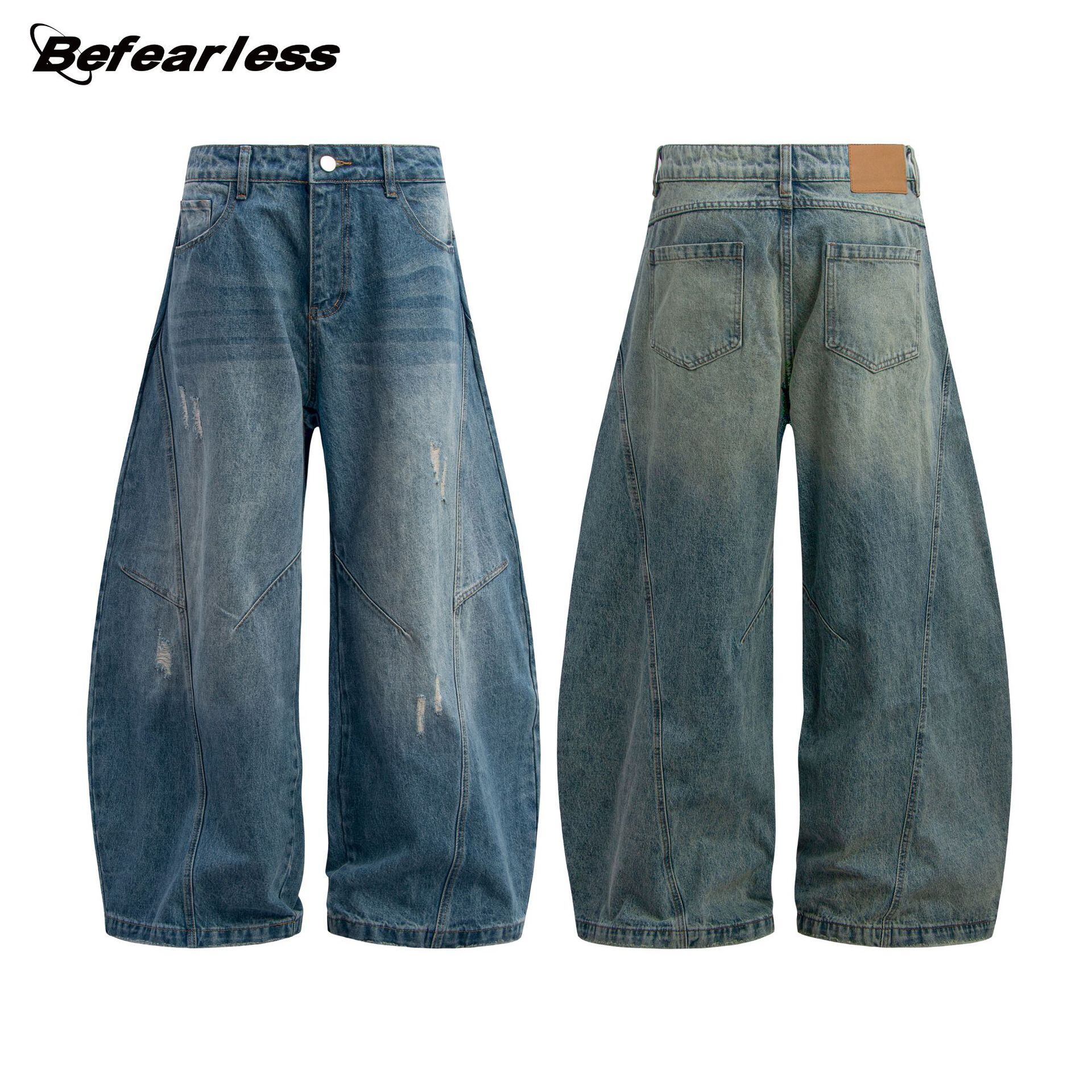カジュアルズボンアメリカレトロ水洗い曲がった刀ジーパン男女ゆったり長い392