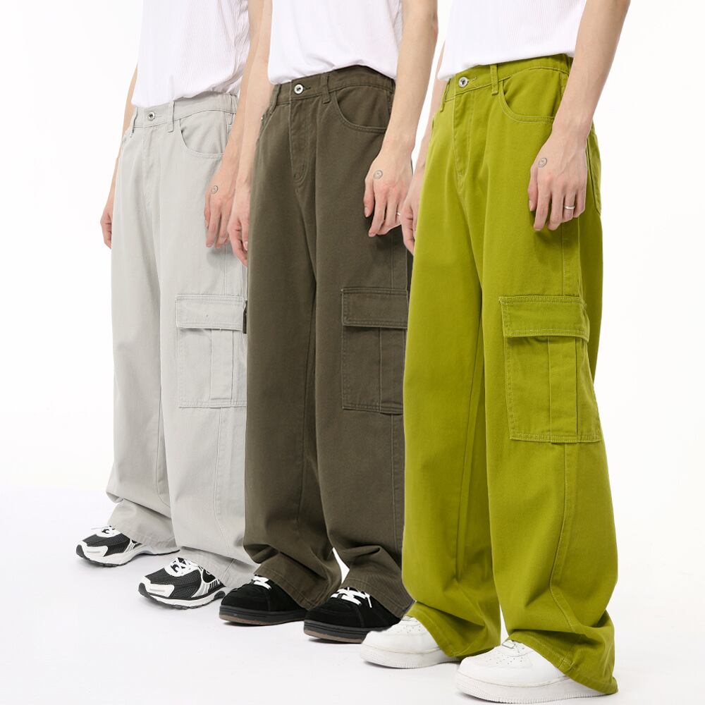 新商品スーツパンツメンズ夏シンプルレトロアメリカ大きなポケットカジュアルゆるい395