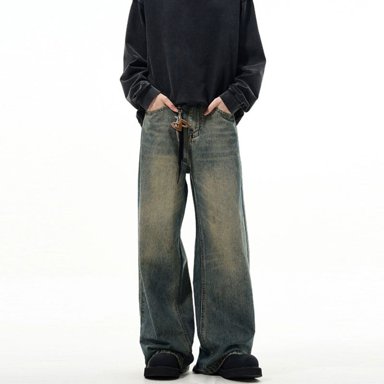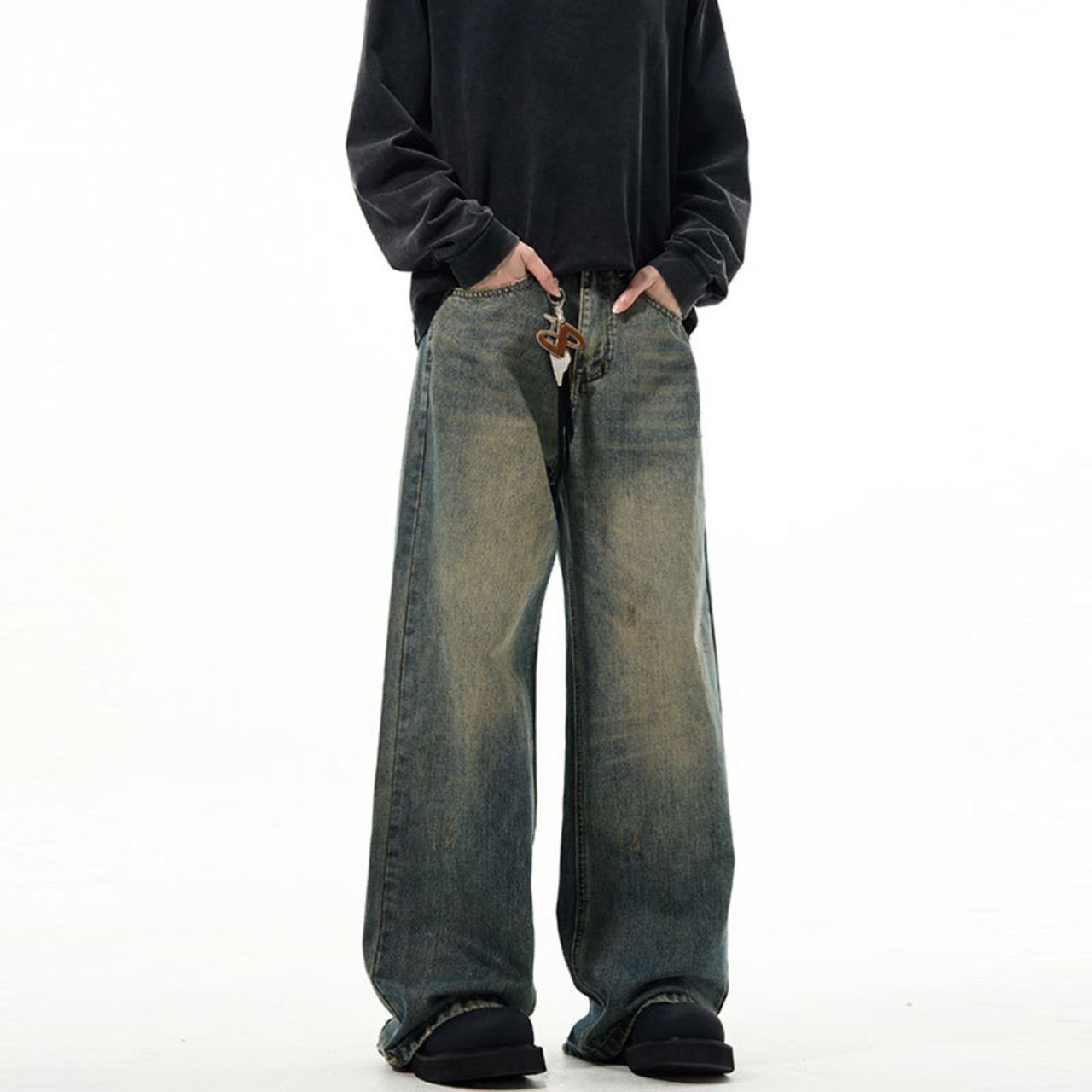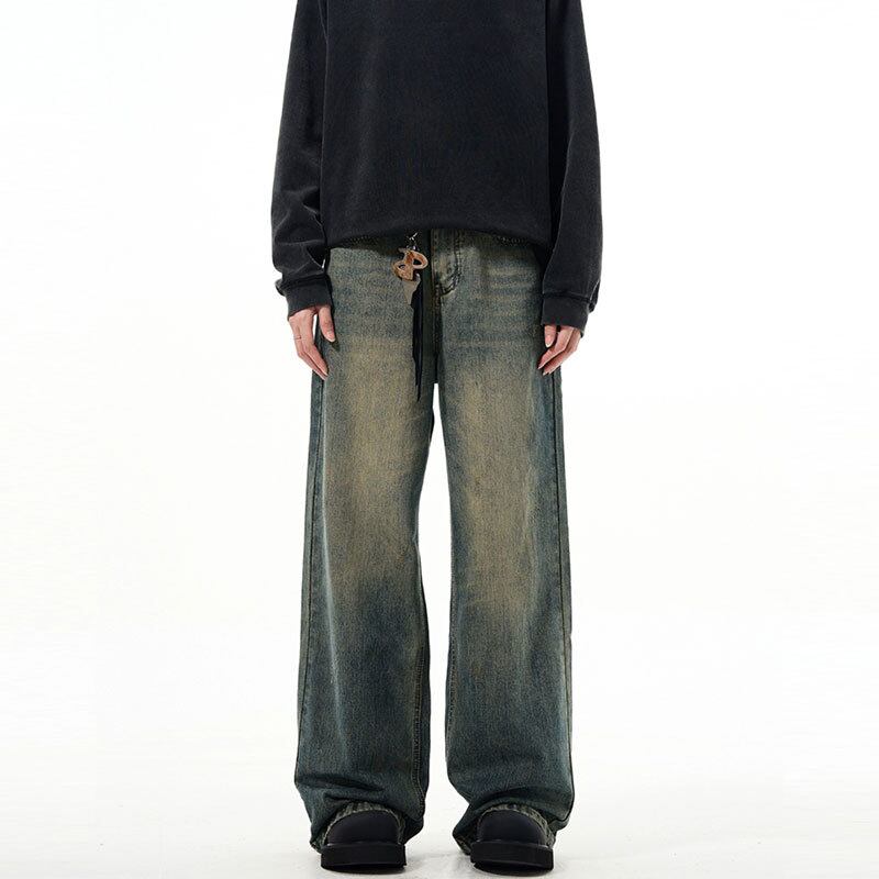 新商品ヴィンテージジーパン男性アメリカ式まっすぐな筒広い足ゆったり春レトロ水洗い403