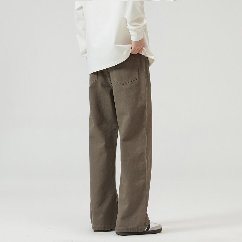 ストレートコットンジーンズメンズアメリカンレトロ美ラードブラウン男女ゆるいズボン407