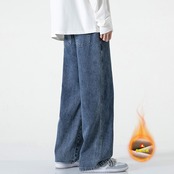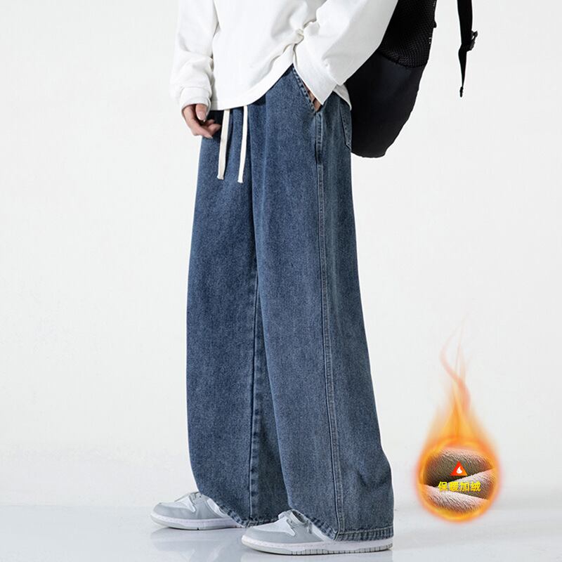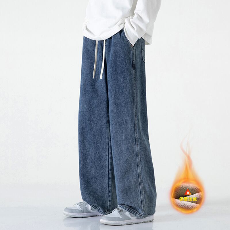 ブルージーンズメンズ広脚男性ベルベット冬保温ゆったりストレート422
