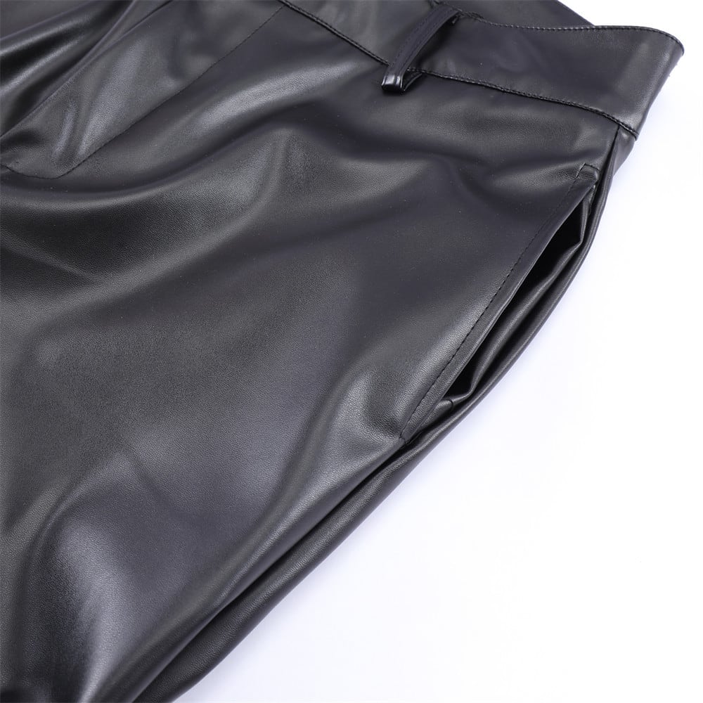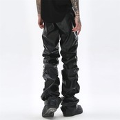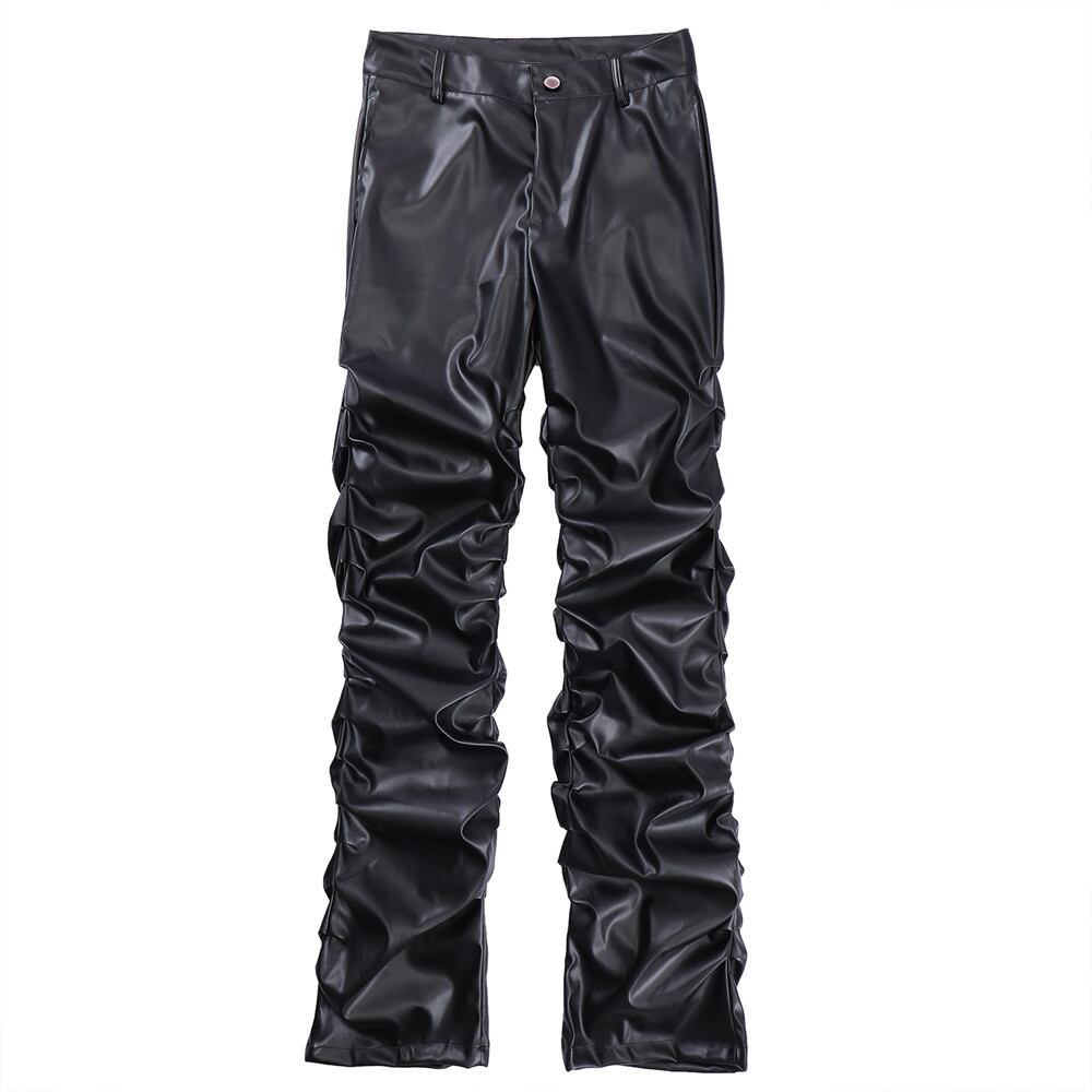 カジュアルズボンダークパンクス明るくしわ男性ヒップホップゆったり人口皮革425