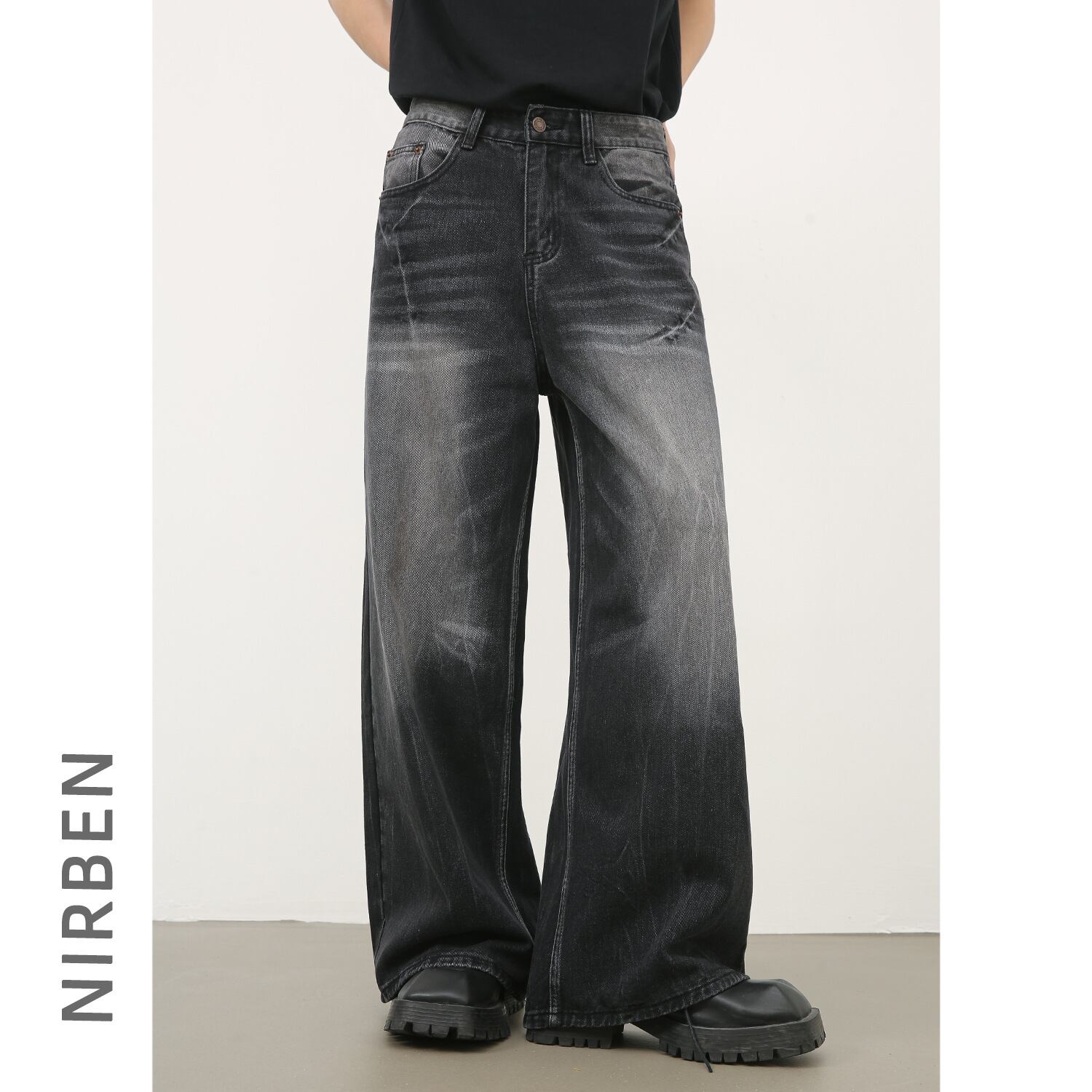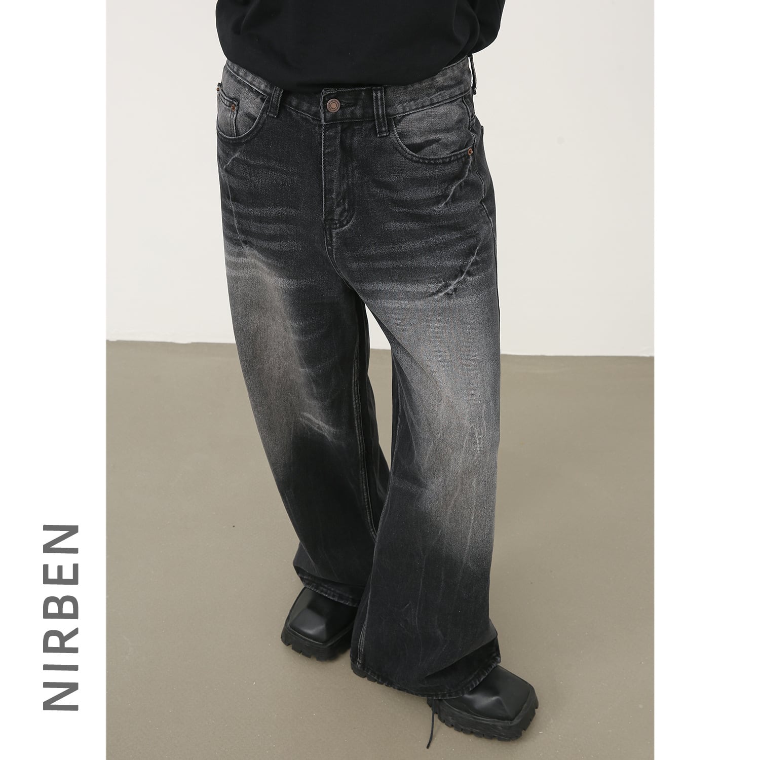 ストレートジーンズカウボーイアメリカゆるいカウボーイ男性レトロ水洗い437