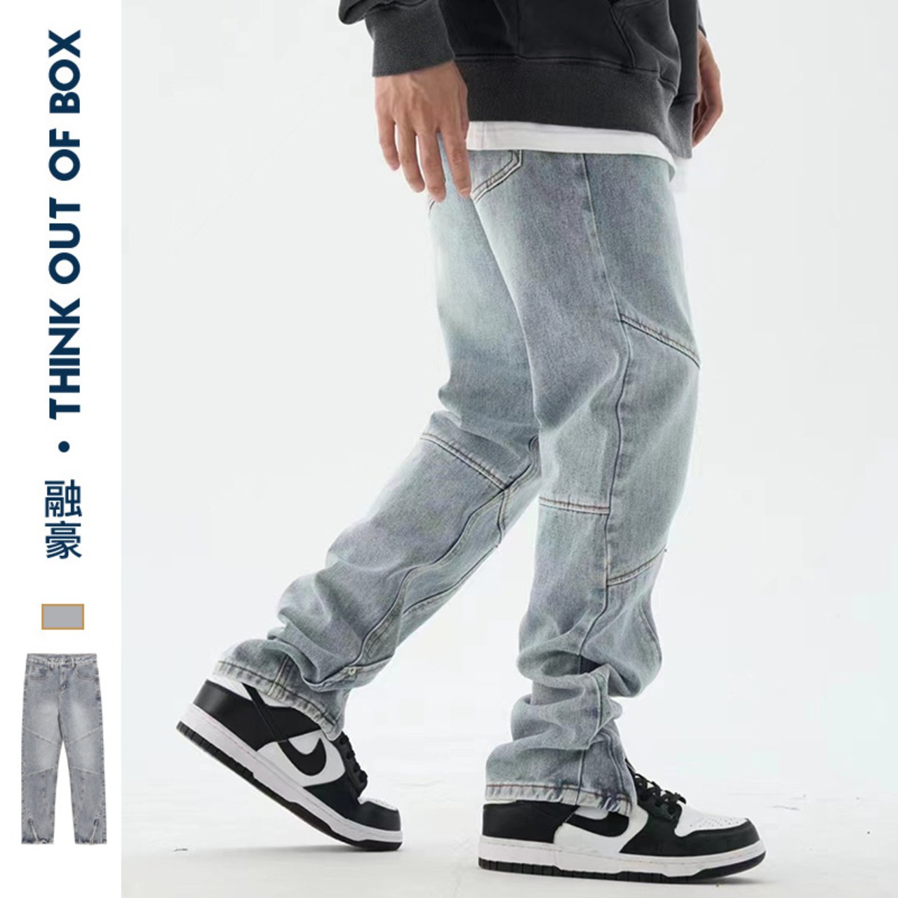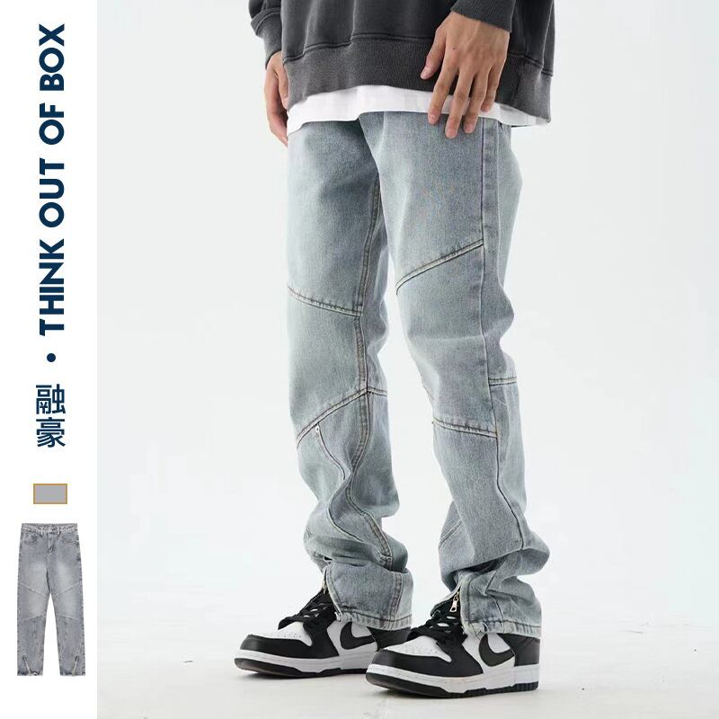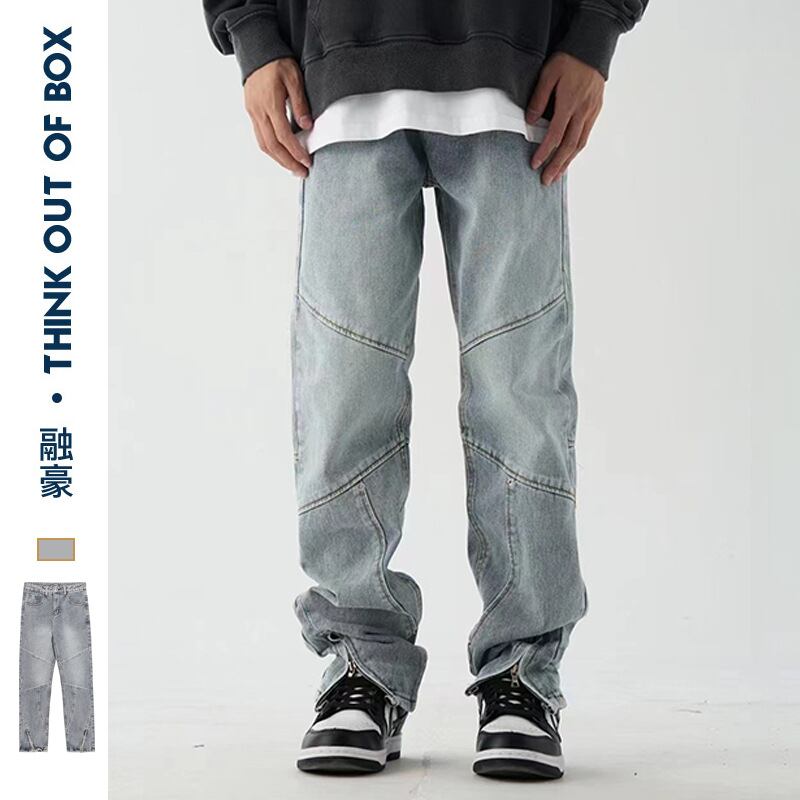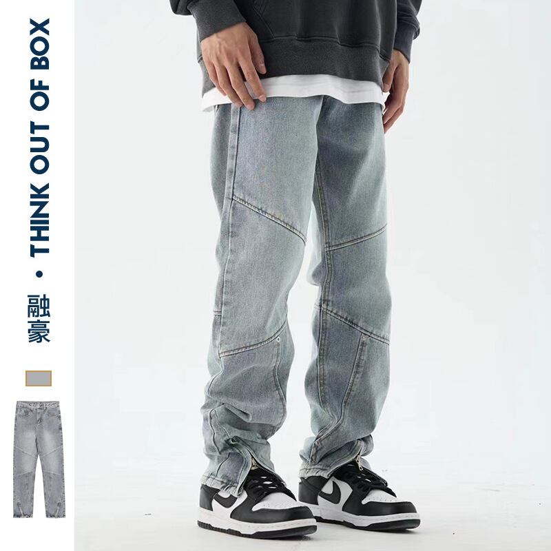 ストレートズボンアメリカズボン裾ファスナージーパン男女ゆったりファッション438
