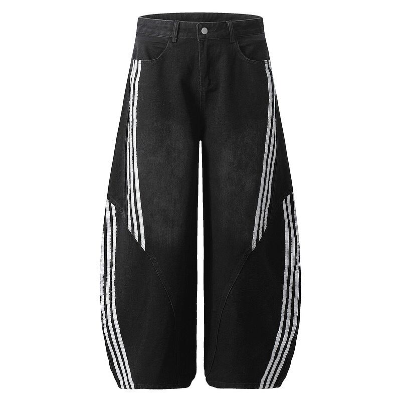 ストライプジーパンアメリカ男女春ゆったりストレート453