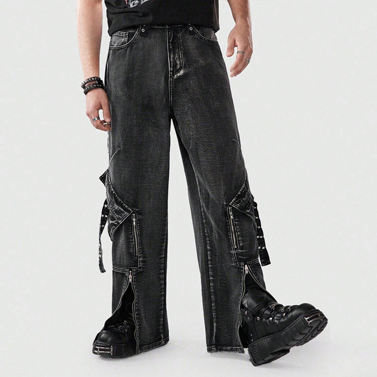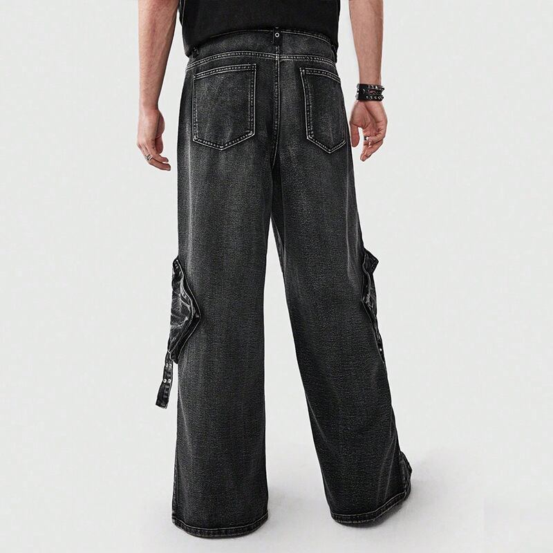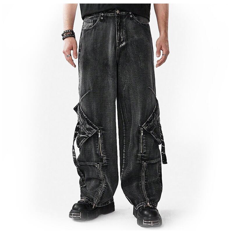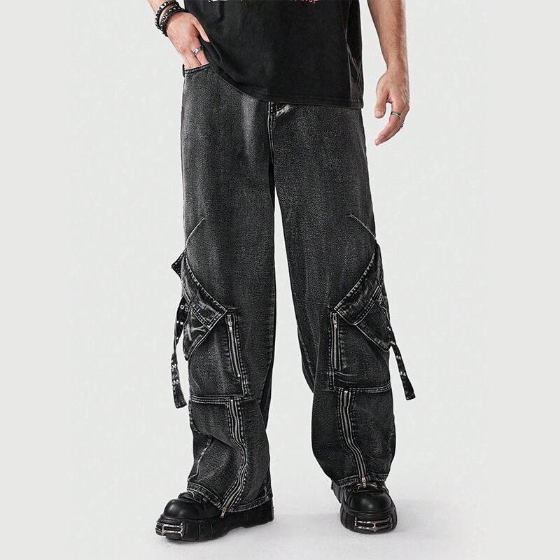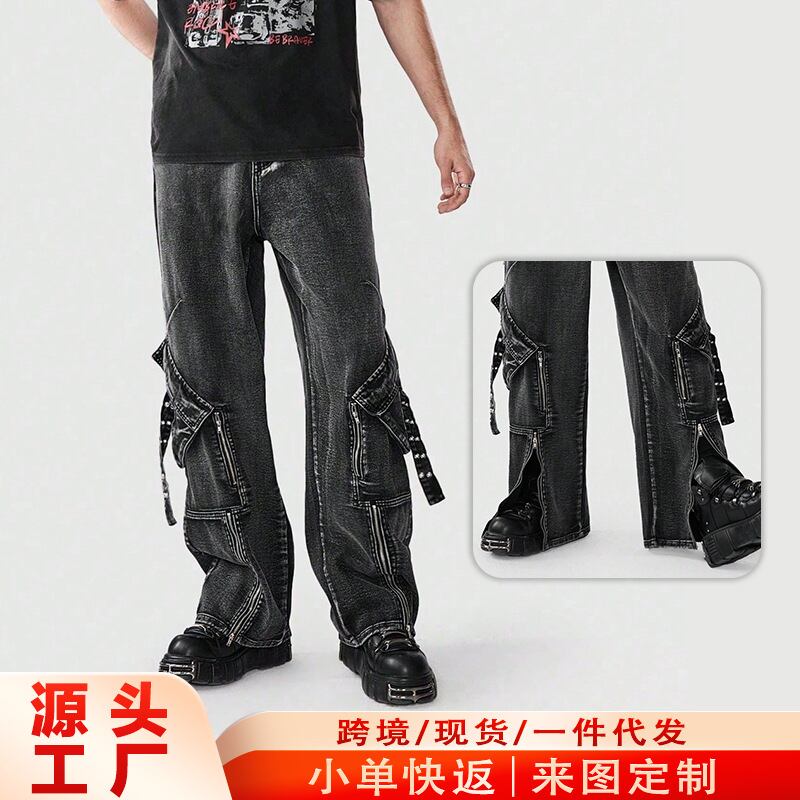 新商品多ポケットファッションズボンファスナー多ポケットファッションズボンアメリカ式まっすぐな広い足ジーパン男性高級感484