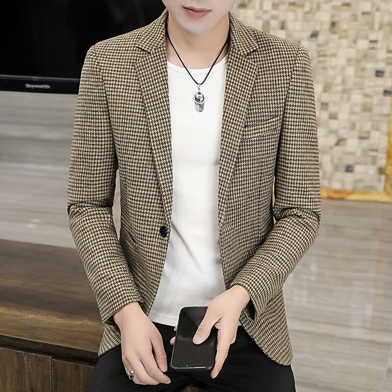 カジュアルスーツ春秋新型男性韓国版ファッション格子男性538