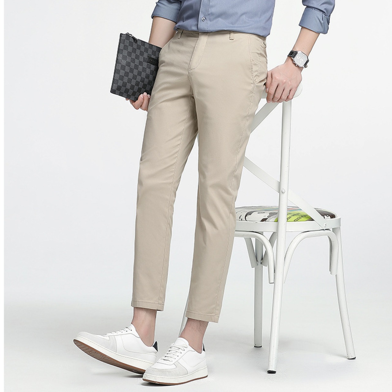 ・この9分ズボンは、シンプルでありながらスタイリッシュなデザインが特徴で、カジュアルなシーンからビジネスシーンまで幅広く活用できるアイテムです!弾力性のある生地が動きやすさを提供し、軽快な印象を引き立てます。