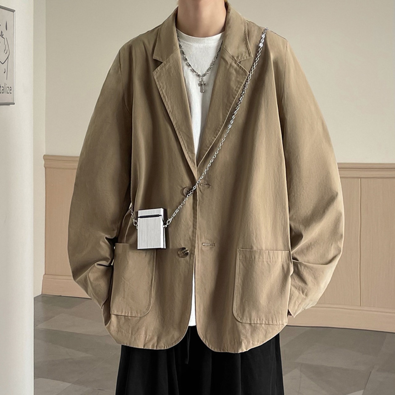 ・このジャケットは、韓国版のトレンドが詰まったカジュアルでありながら高級感のある無地デザインが魅力です!シングルのスタイルがスマートな印象を与え、ビジネスシーンやカジュアルな外出にも最適な一着です。