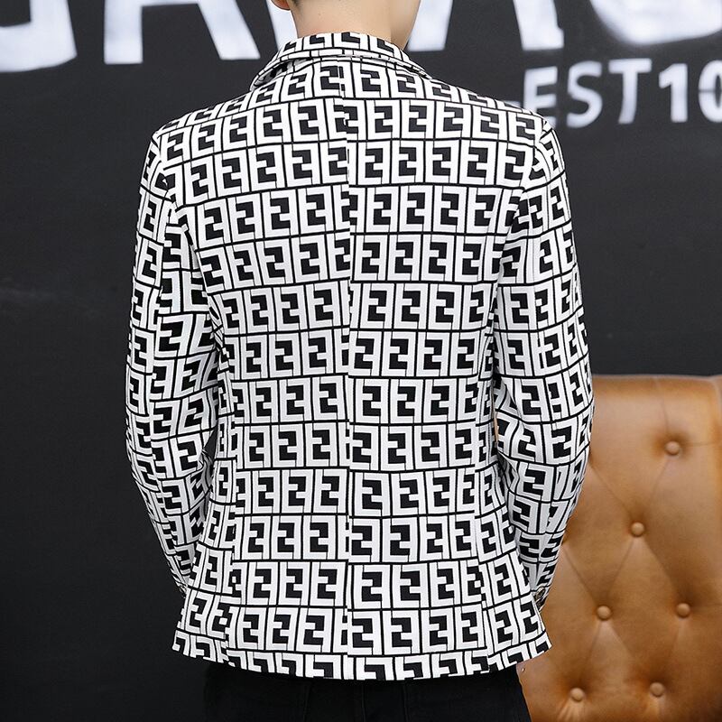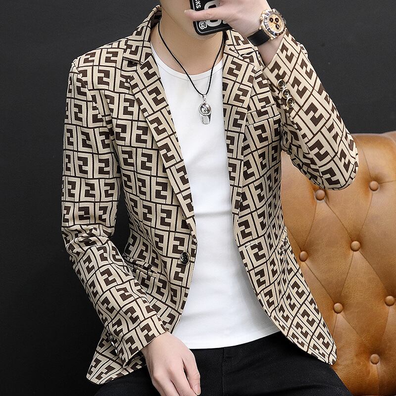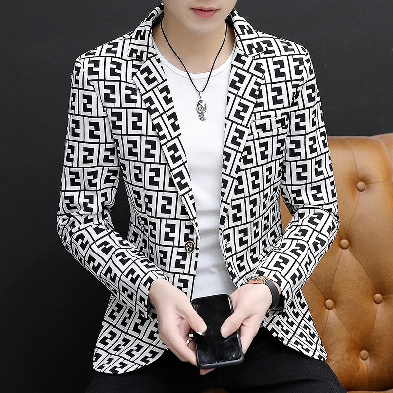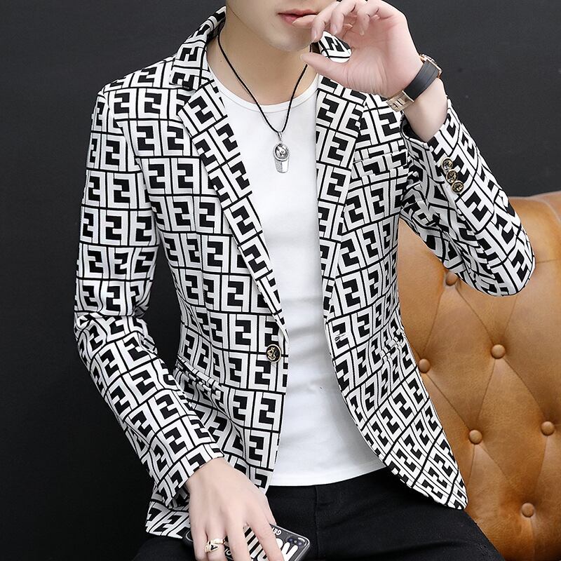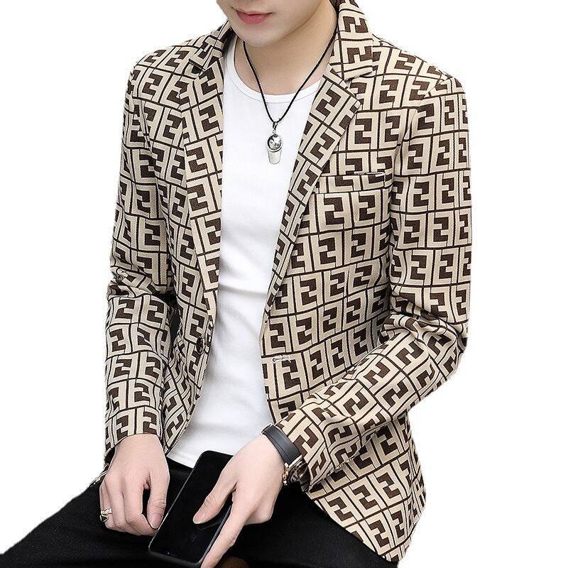 秋新型スリムスーツ男性韓国版男性青年コート格子ファッション583