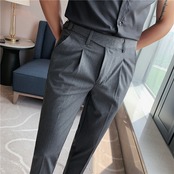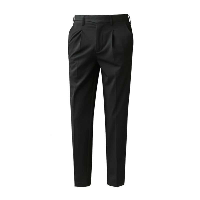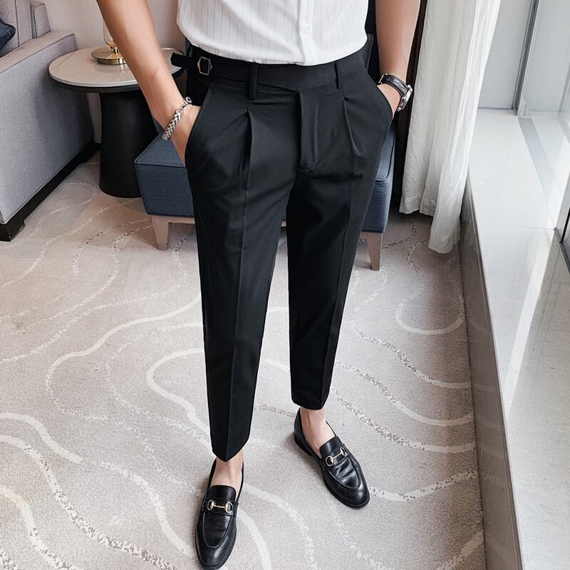 男性質感カジュアルスーツズボン韓国版スリム9分ズボンベルト装飾597