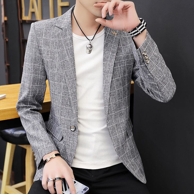 カジュアルスーツ上着男性韓国版上着格好いい格子ファッション春秋正装615
