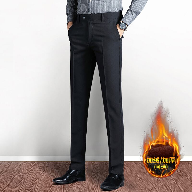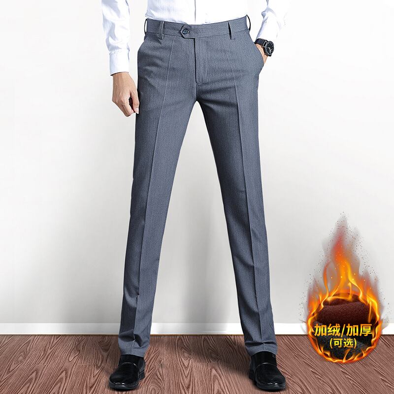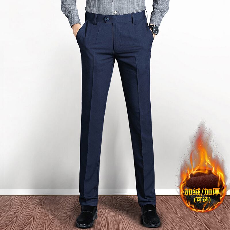 カジュアルパンツズボン男性秋冬韓国版弾力ズボンベルベットストレートビジネススーツ667