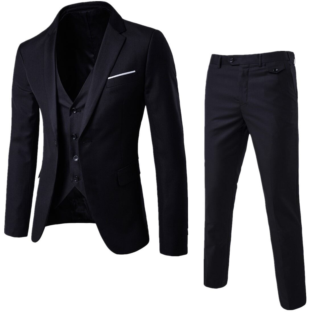 ・ジャケット、パンツ、そしてベストの3つのセットで構成されており、様々なスタイルやシーンに対応可能な柔軟性を持っています。